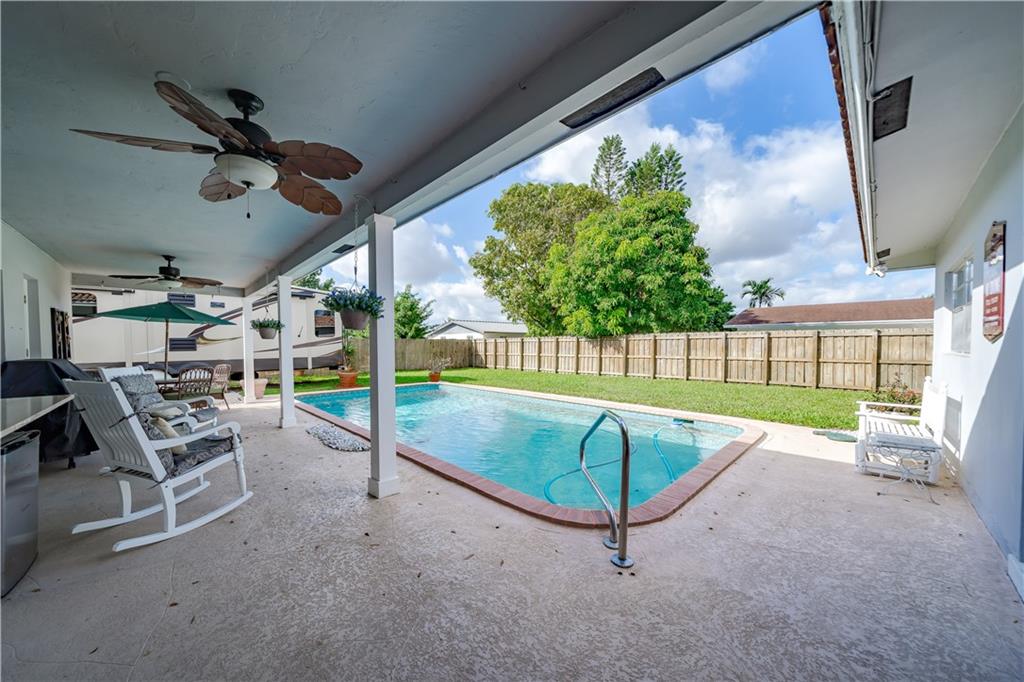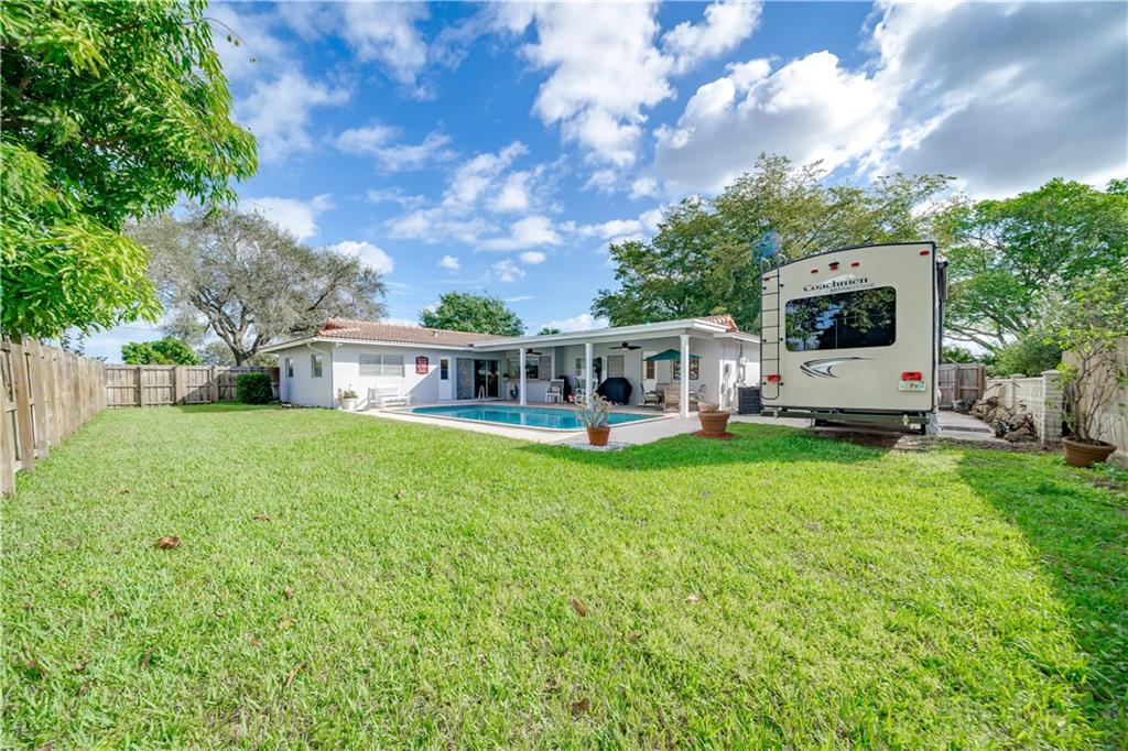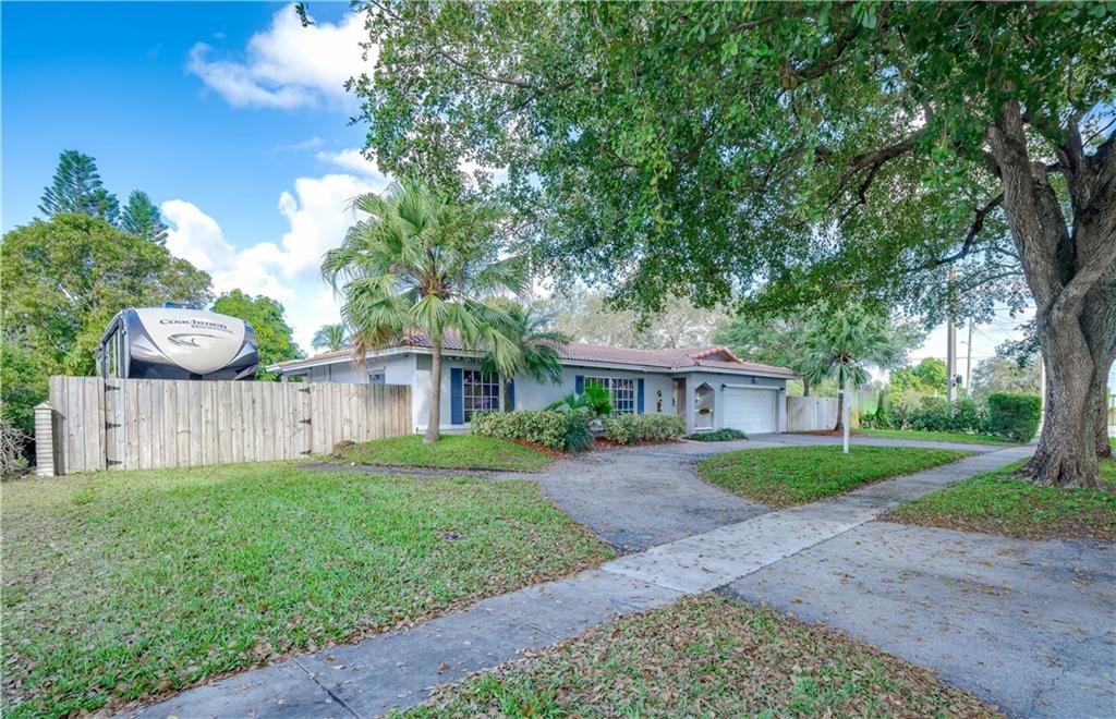 FABULOUS 5/2 home on a GRANDIOSE totally fenced lot! Park your RV (these sellers do) on its own concrete slab AND give your kids or fur babies a totally separate yard of their own to play in. Laminate floors throughout, updated kitchen with Quartz counters & S/S appliances. Kitchen opens up to family room with pass through to the patio. Formal Dining & Formal Living rooms. Recently painted interior. Split bedroom plan. Both Cabana baths recently redone with new tile, vanities & fixtures. 2 yr. Rheem A/C & 3 yr garage door & opener. Custom built shelving in the garage for organized storage. Roofed patio area with cool deck, salt filtration pool with baby fence and all equipment. WALKING distance to Plantation Heritage Park & Tropical Elem. Minutes to the turnpike, 595 & I-95.