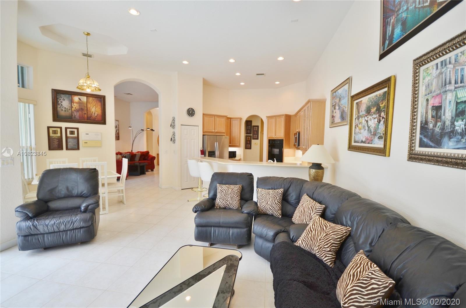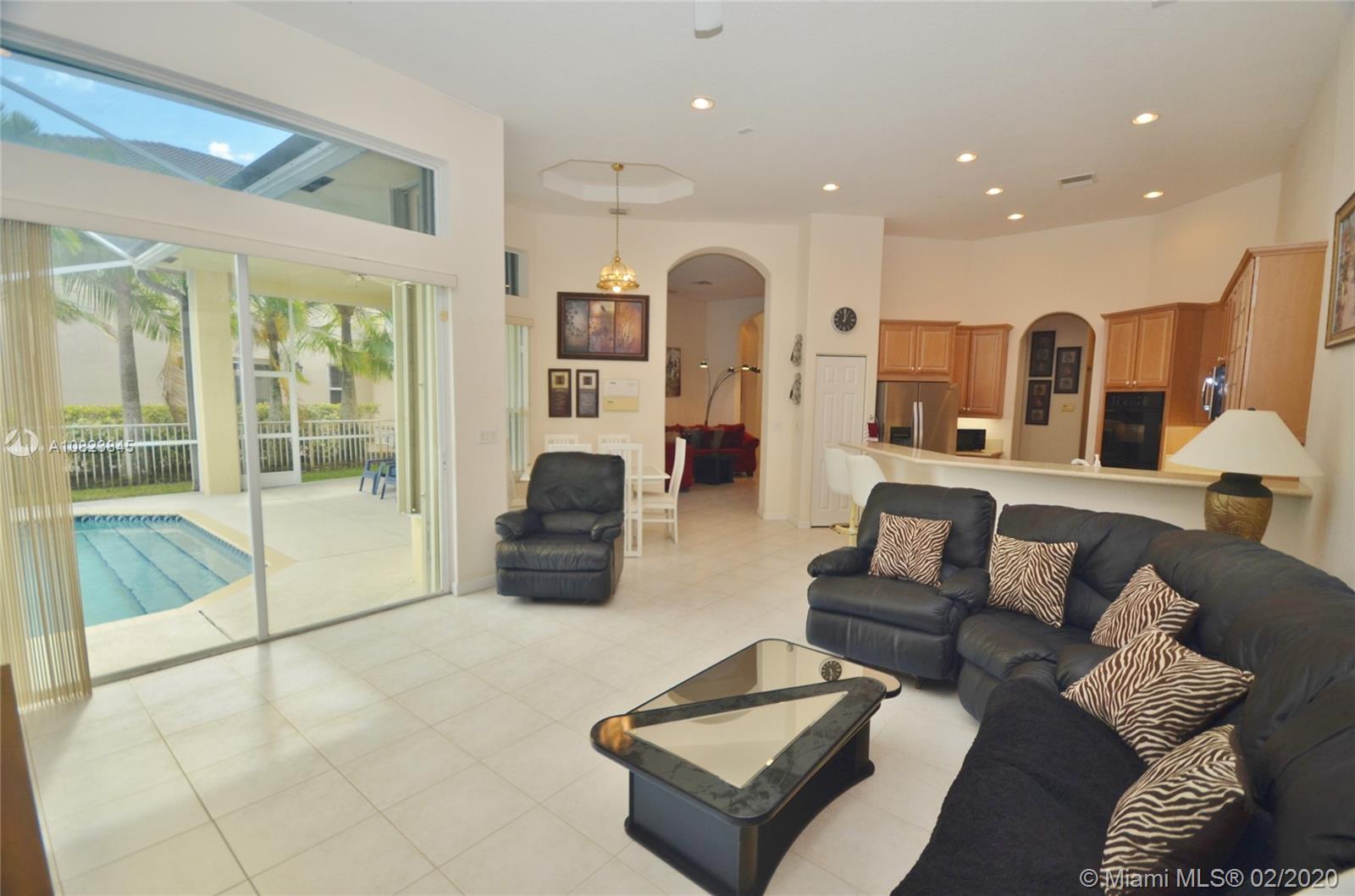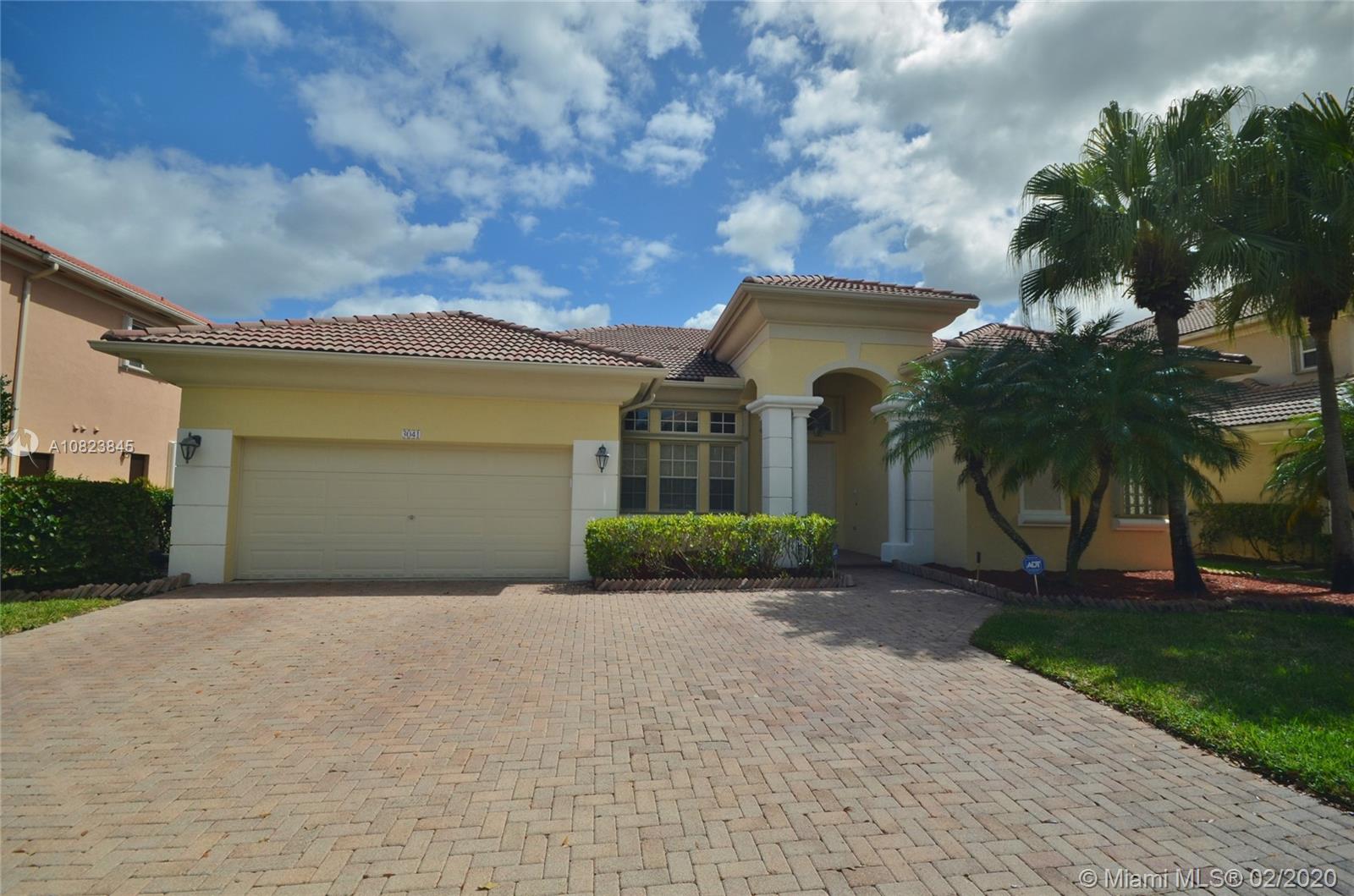 Stunning 1 story, 5 bedrooms, 3 bathrooms, 2 car garage, pool, popular Rubens model with breathtaking lake views in gated Grand Isles of Sunset Lakes. This home features an open spacious floor plan, high ceilings, crown moldings, tiled through living areas, hi hat lighting, dramatic trey ceilings, updated kitchen counter tops with 42"updated cabinets, and a breakfast nook area that looks out into the pool and lake. Great natural light makes it very inviting Master bedroom with his and hers walk-in closet. Spacious master bath with soaking tub, shower and separate sinks. Walk -in closets in all bedrooms. Exterior features screened patio, sparkling pool, and gorgeous lakeviews, perfect for gatherings. Accordions shutters. The community offers many amenities. Make it yours today!!!