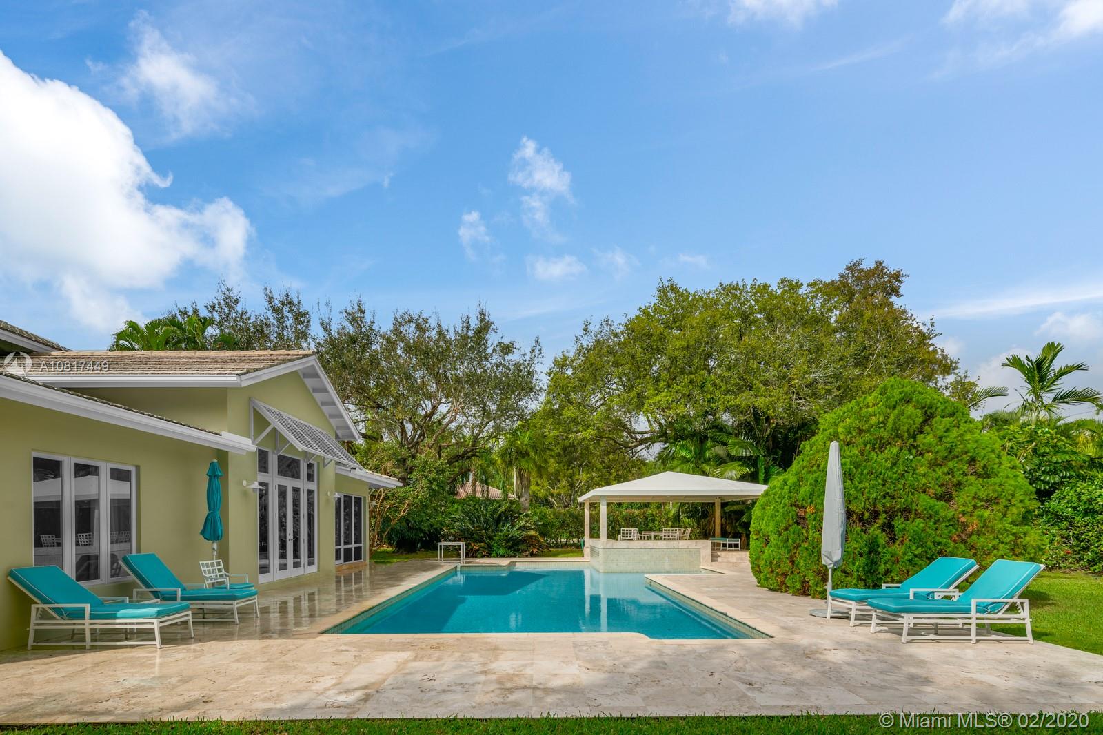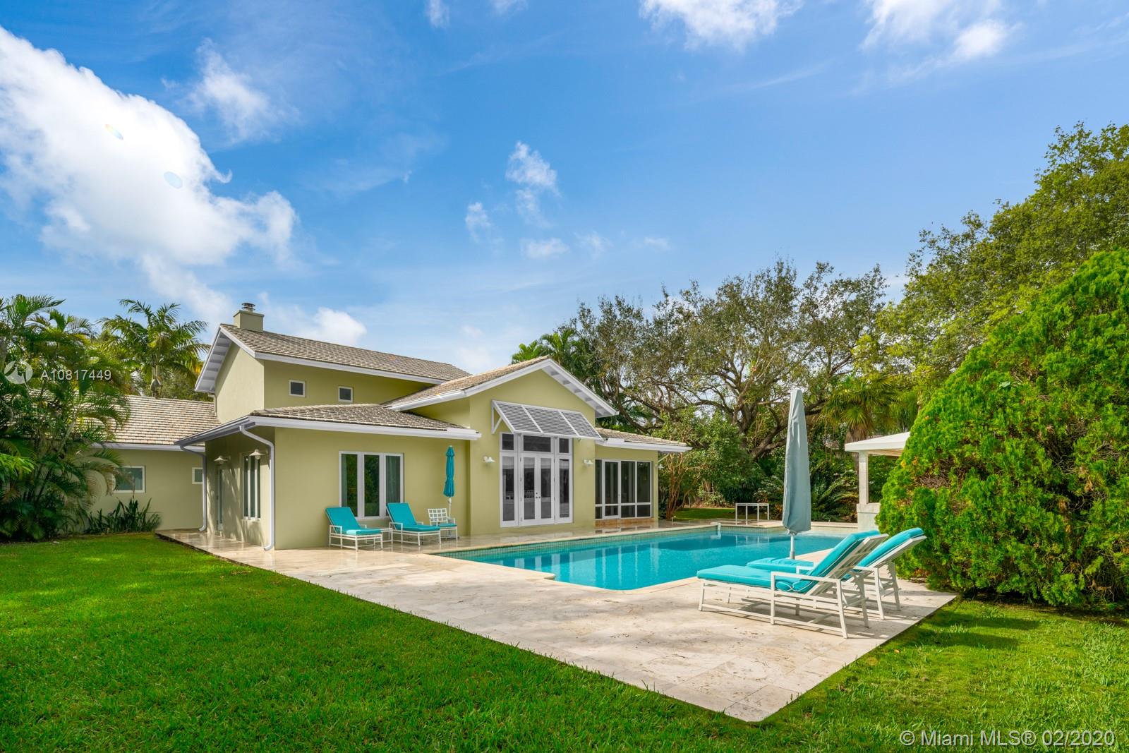 This spectacular 6,960 Sq. Ft. Pinecrest residence combines location, space, and comfortable living while being perfectly nestled on a beautiful 39,204 Sq Ft lot with fruit trees and exotic plants. This beautifully renovated home has every modern amenity needed, including an eat-in kitchen, 5 bedrooms, 4 bathrooms, a screened patio and a sparkling pool. Highlights also include custom woodwork, Artemide lighting, high ceilings and large windows for perfect lighting and sun-filled rooms. A Jasper Conran fireplace completes the home with warmth and charm. Escape into serenity, privacy, and natural beauty with this home while still being close to schools, parks, restaurants and shops.