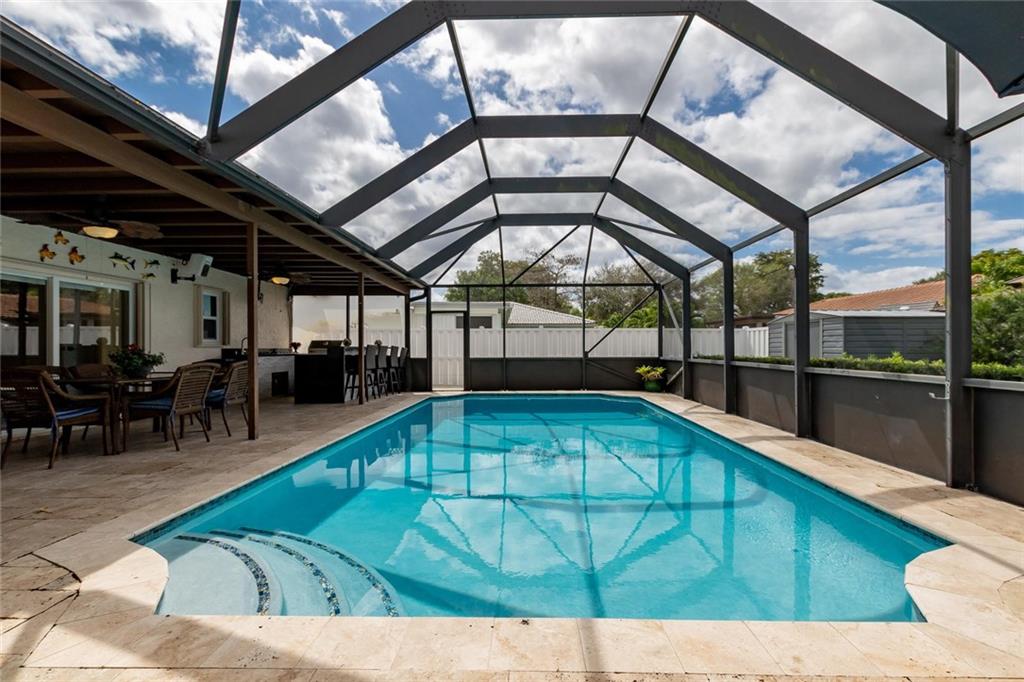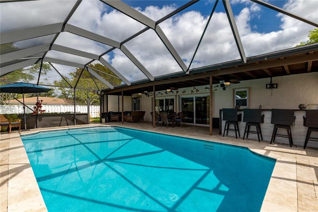Beautiful remodeled 4/3 pool home in Coral Springs! This 1-story split floor plan home features: New energy efficient windows, accordion shutters, hurricane rated garage door, huge circular driveway, corner lot, family room, breakfast area, kitchen granite counter tops, SS appliances, 24” porcelain tile floors thru-out living area, 18” porcelain tiles in bedrooms, walk-in closets, knockdown ceiling texture throughout, spacious master, screened in pool, New fully equipped outdoor kitchen, New Travertine pool deck, New diamond bright finished pool w/newer pool pump and fenced backyard perfect for entertaining, yard shed. No HOA fees.
