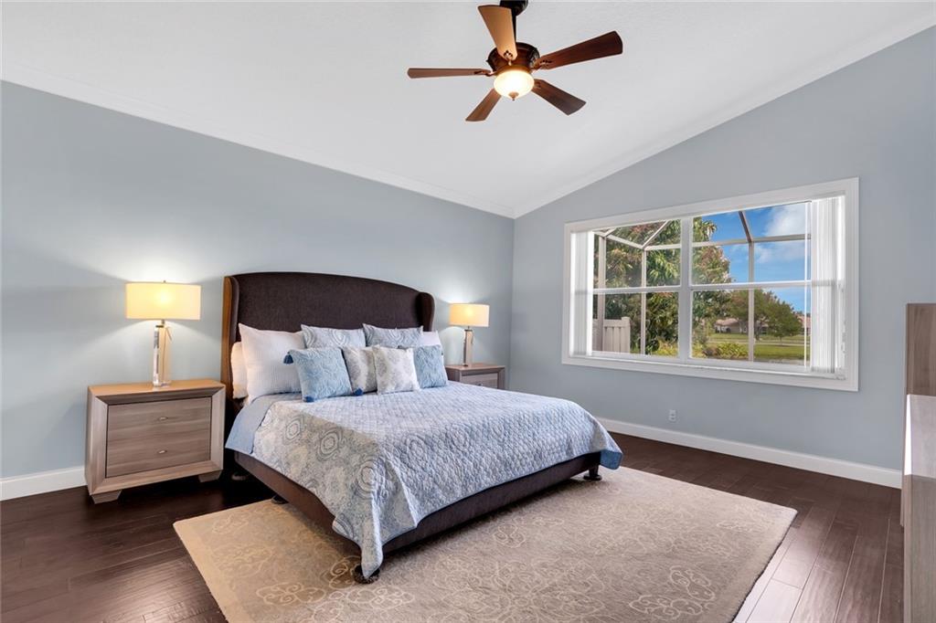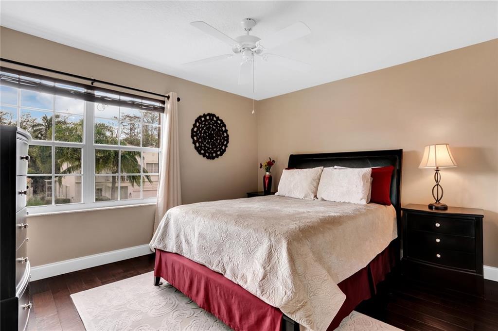 Beautiful waterfront views await you in your new house in the desirable community of Mizner Pointe. Soaring ceilings when you enter the living room lead you to your downstairs master bedroom oasis off the kitchen. Kitchen features newer Stainless Steel appliances and granite counter tops. Beautiful wood floors lead you upstairs which features a spacious loft - great for kids! 1 bedroom has ensuite bathroom, and 2 more bedrooms with a shared bathroom. Enjoy your long screened-in patio and beautiful lake view from your oversized family room & master bedroom. Home features accordion shutters for hurricane protection and low insurance. Zoned for Del Prado Elementary Omni Middle, & Olympic Heights High - All EXCELLENT schools! Easy access to Turnpike & 95 and close to Boca Mall & shopping!