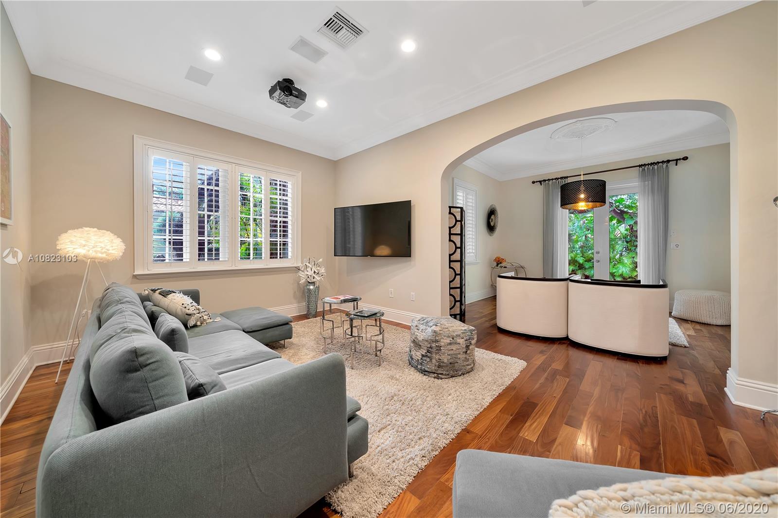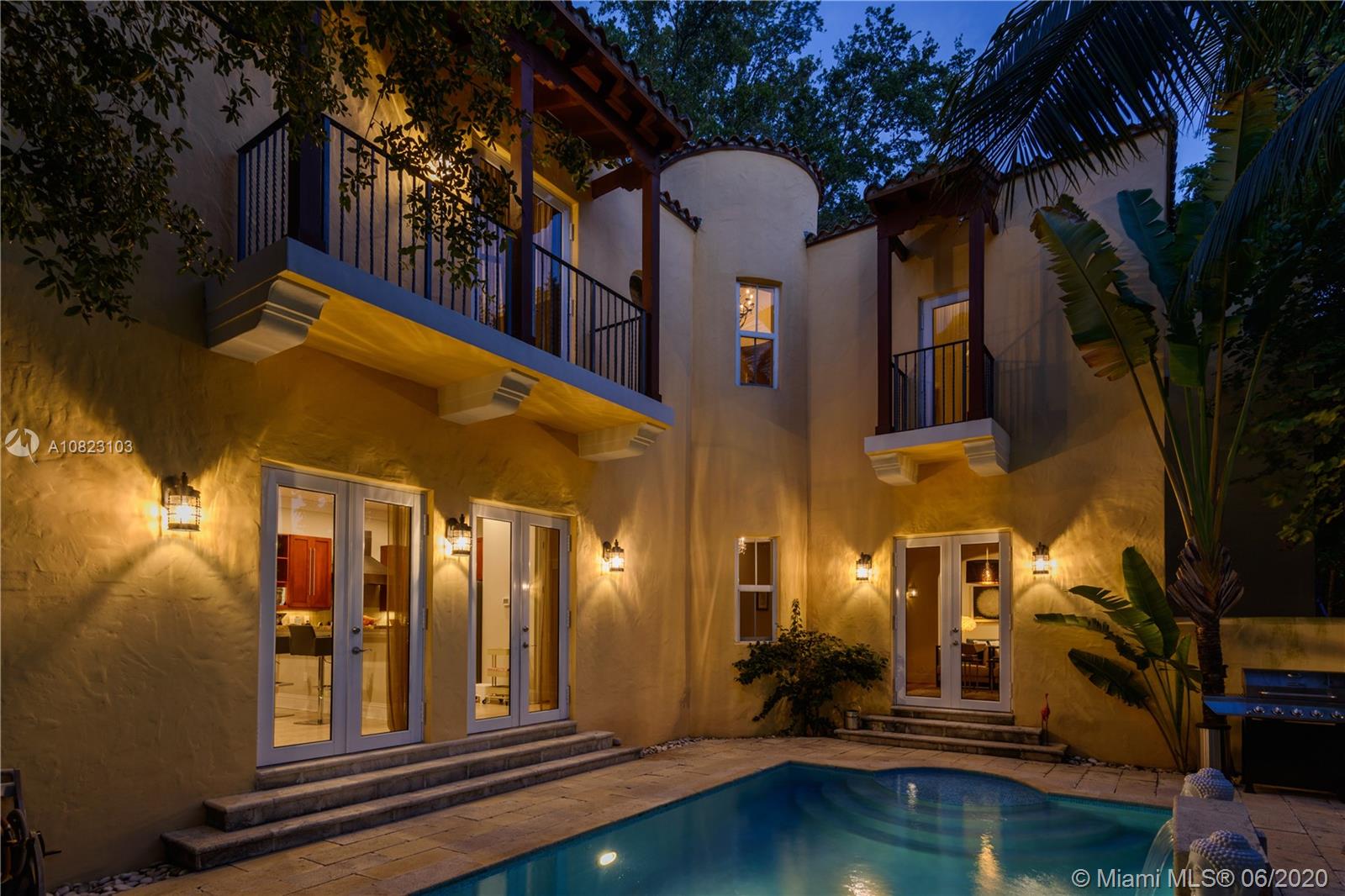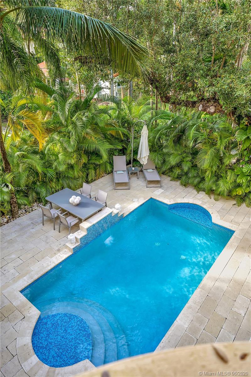 Step into the charm and elegance of this Mediterranean inspired villa built in 2009 by Coral Gables established developer RMQ. Nestled in Amalfi ave, it reminds the best of Italy while offering the comfort and quality of a contemporary property. 10 ft high ceilings on both floors, arched foyer, beautiful staircase, “Romeo and Juliet” adorable balconies, large sunset terrace overlooking oak trees. The L-shape allows open views to the pool. Generous master with her/his walking closet. Convenient laundry upstairs. Additional den with its bath and own entrance (can be turned back to its original garage). Heated pool, meticulously maintained property, hurricane windows and doors. Minutes from Merrick Park mall and short walk to Carver Middle International Magnet school.