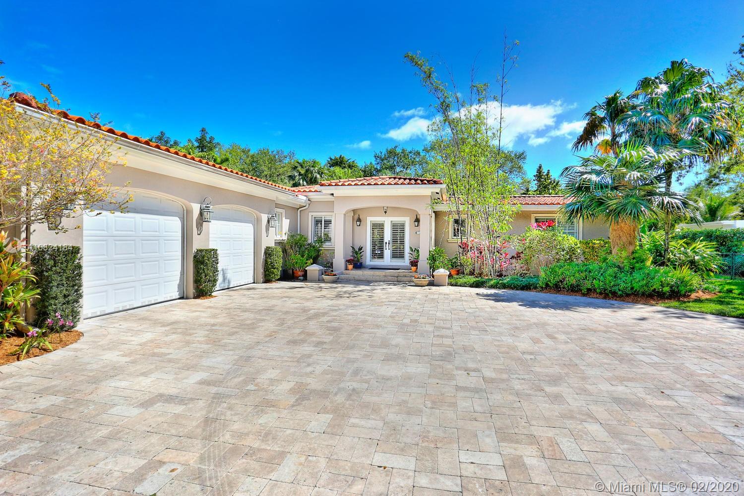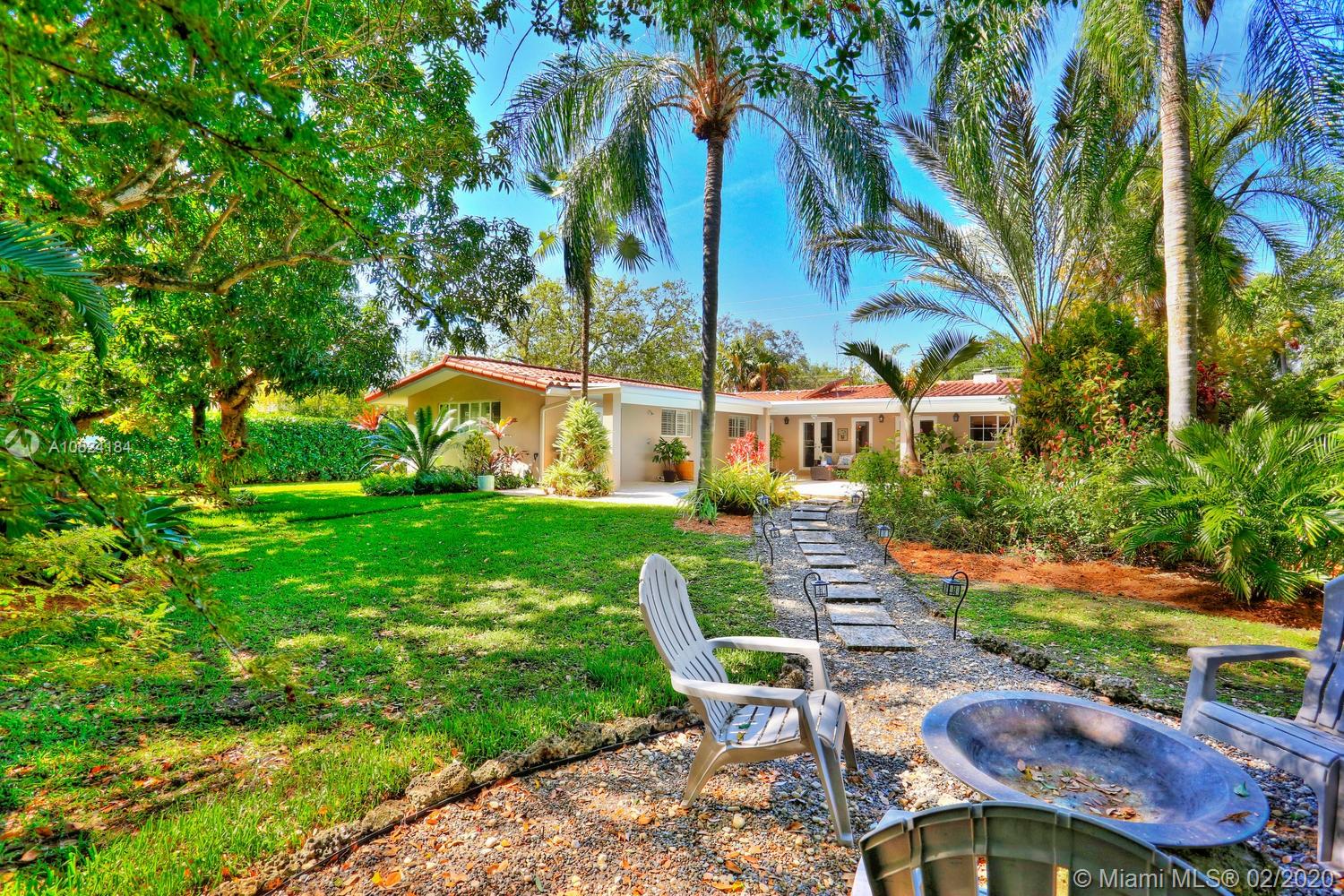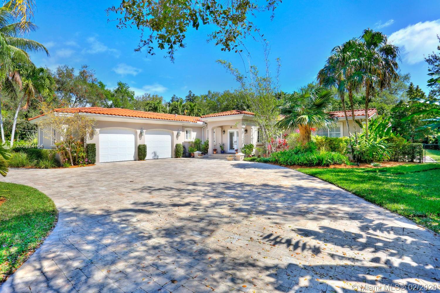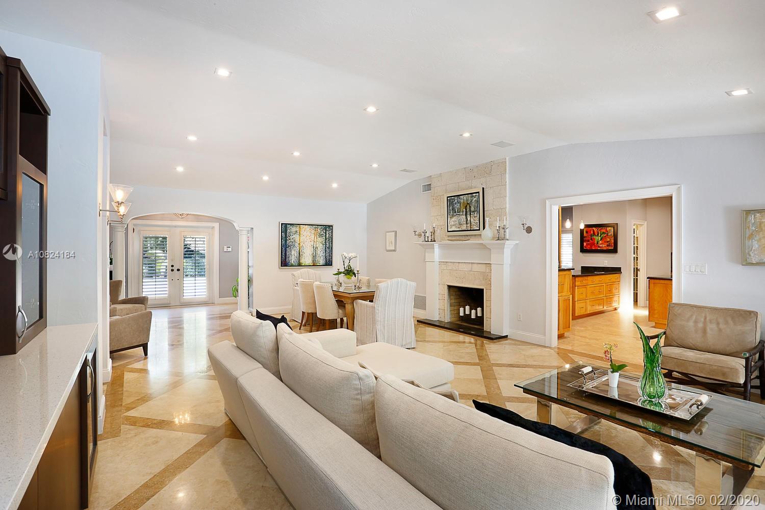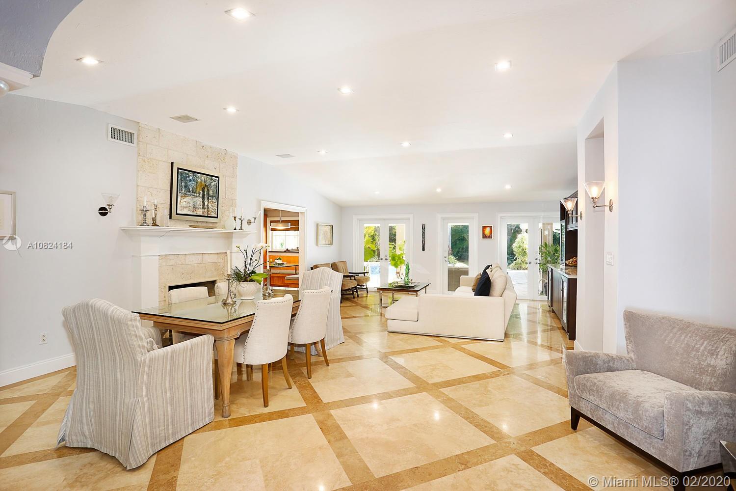Magazine quality estate surrounded by a ~20,000 SF lush tropical lot w/ mango & avocado trees. Located in a prime North Pinecrest neighborhood. Major renovation & expansion in 2003 w/additional recent updates including appliances, HVAC's, bathrooms & new roof. Light-filled living spaces feature marble & wood flooring, volume ceilings, California shutters, crown moldings & a working fireplace. Large, open kitchen has center island, bar seating, custom wood cabinetry, stainless appliances (including gas range), granite countertops, walk-in pantry and separate breakfast nook. Master suite features sitting area, walk-in closet and luxurious bath with frameless glass steam shower & soaking tub. Spectacular outdoor area offers covered terraces, pool w/spa & expansive ultra-private garden.
