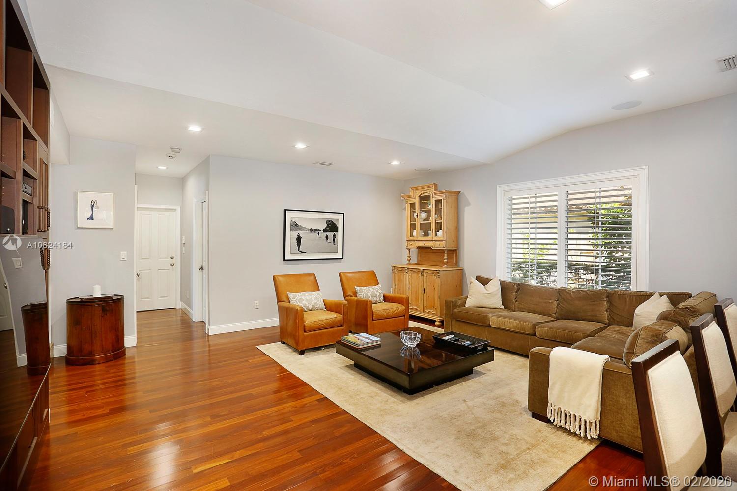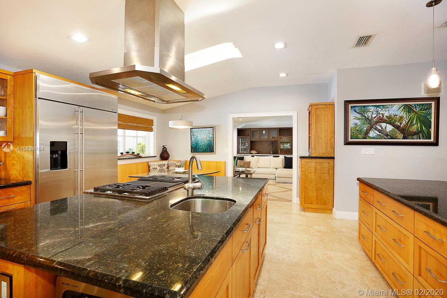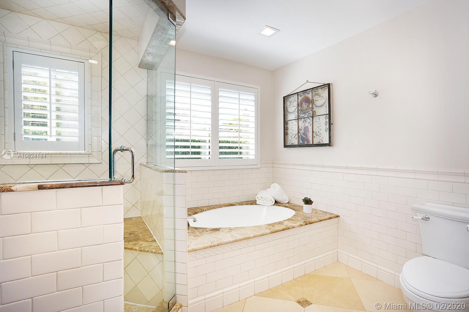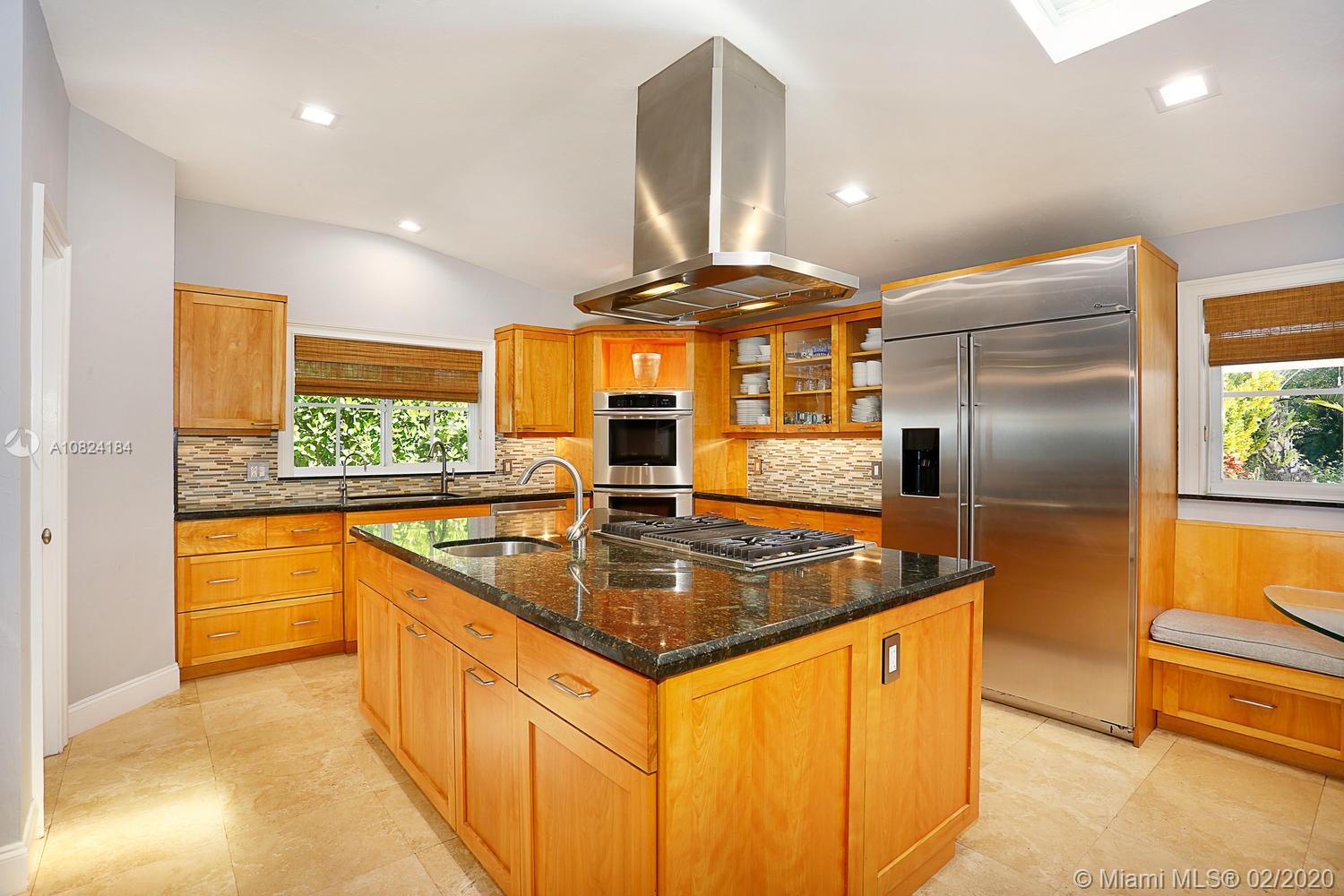 Magazine quality estate surrounded by a ~20,000 SF lush tropical lot w/ mango & avocado trees. Located in a prime North Pinecrest neighborhood. Major renovation & expansion in 2003 w/additional recent updates including appliances, HVAC's, bathrooms & new roof. Light-filled living spaces feature marble & wood flooring, volume ceilings, California shutters, crown moldings & a working fireplace. Large, open kitchen has center island, bar seating, custom wood cabinetry, stainless appliances (including gas range), granite countertops, walk-in pantry and separate breakfast nook. Master suite features sitting area, walk-in closet and luxurious bath with frameless glass steam shower & soaking tub. Spectacular outdoor area offers covered terraces, pool w/spa & expansive ultra-private garden.