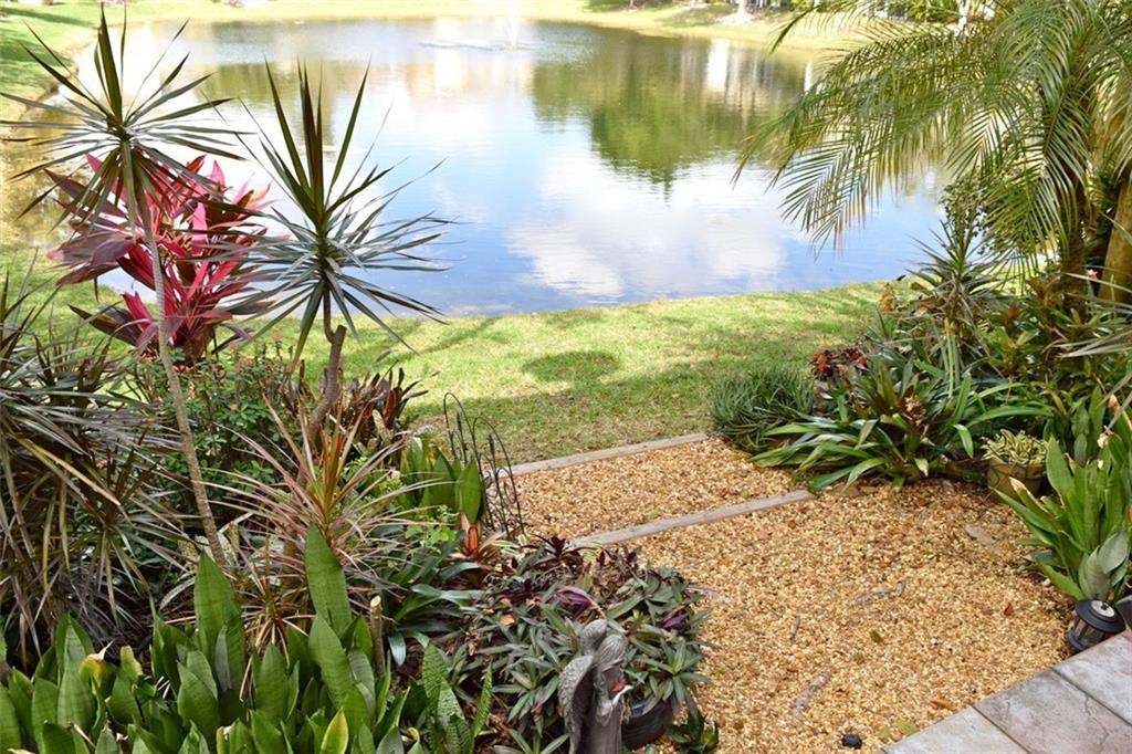 Beautiful 3 bedroom / 2 and a half bath townhouse w/garage is located in desirable gated community of Pine Bay. This well maintained unit offers spacious, updated kitchen featuring granite countertops, wood cabinets, & newer appliances. Other great features include tile flooring downstairs, knockdown textured walls, paver drive way & accordion hurricane shutters. This unit offers a beautiful lake view which you can enjoy from your tiled back patio. Unit is currently being used as a 2 bedroom with open loft but it is the builders 3 bedroom model. Pine Bay is gated and offers a community pool which is steps from the unit. New roofs are in the processing of being installed by association. Low HOA fees, just $160/month. A must see.