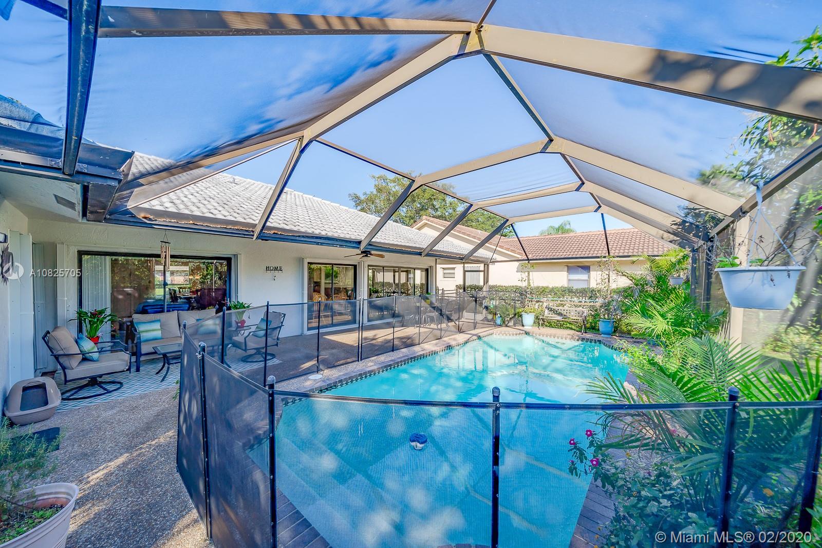 Don't miss out on this cozy one-story home in The Crossings. Spacious design with beautiful natural lighting and updated bathrooms. The ample master bedroom overlooks the pool and has a large walk-in closet. Roomy secondary bedrooms. Enjoy evenings on the screened-in patio while the children play in the pool! Tile and laminate throughout. Large fenced yard perfect for pets! Accordion shutters on patio doors and impact windows throughout the home. The location is ideal...close to shopping centers, Sawgrass Expressway, and the Turnpike. Hot water heater 5 years, New AC!