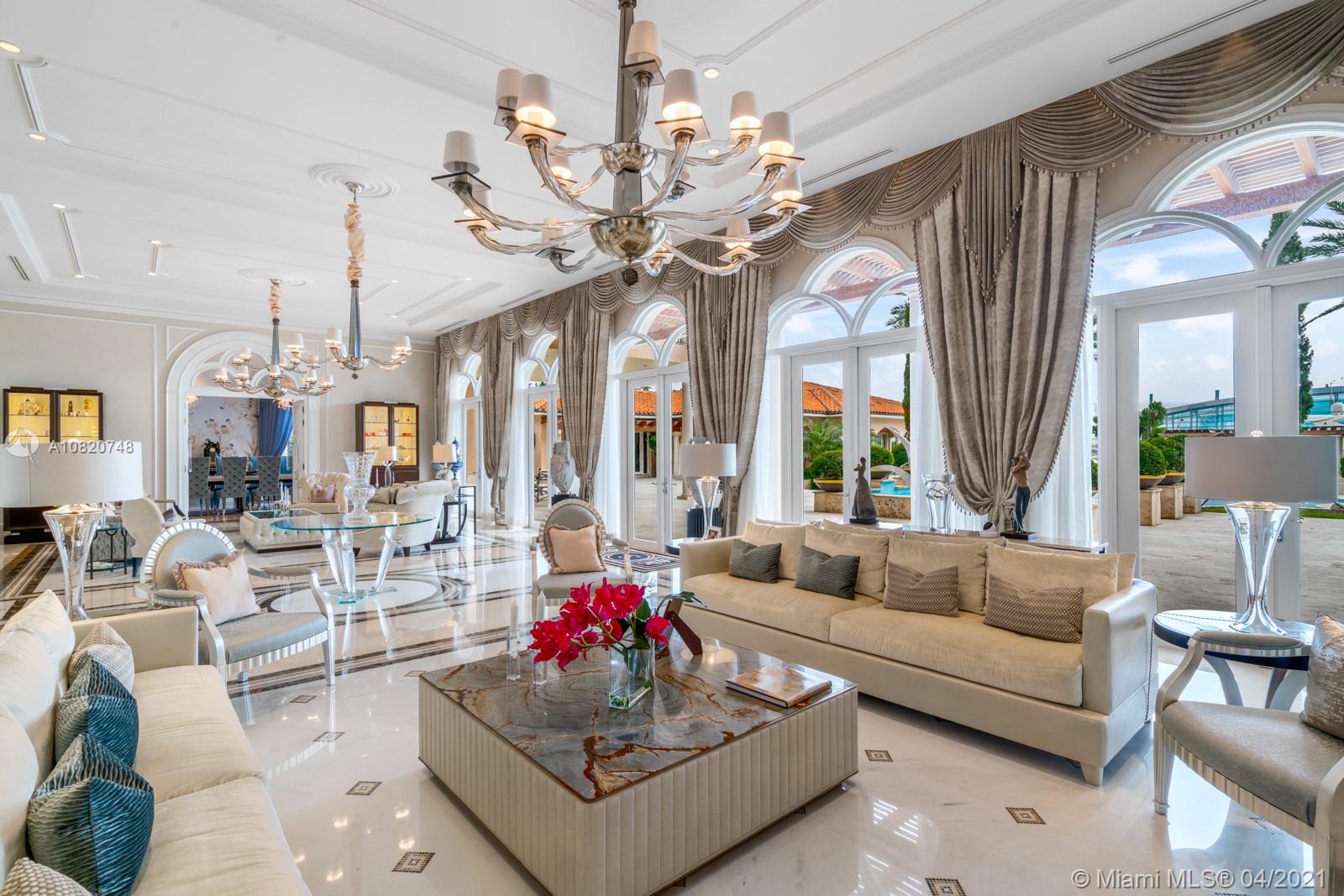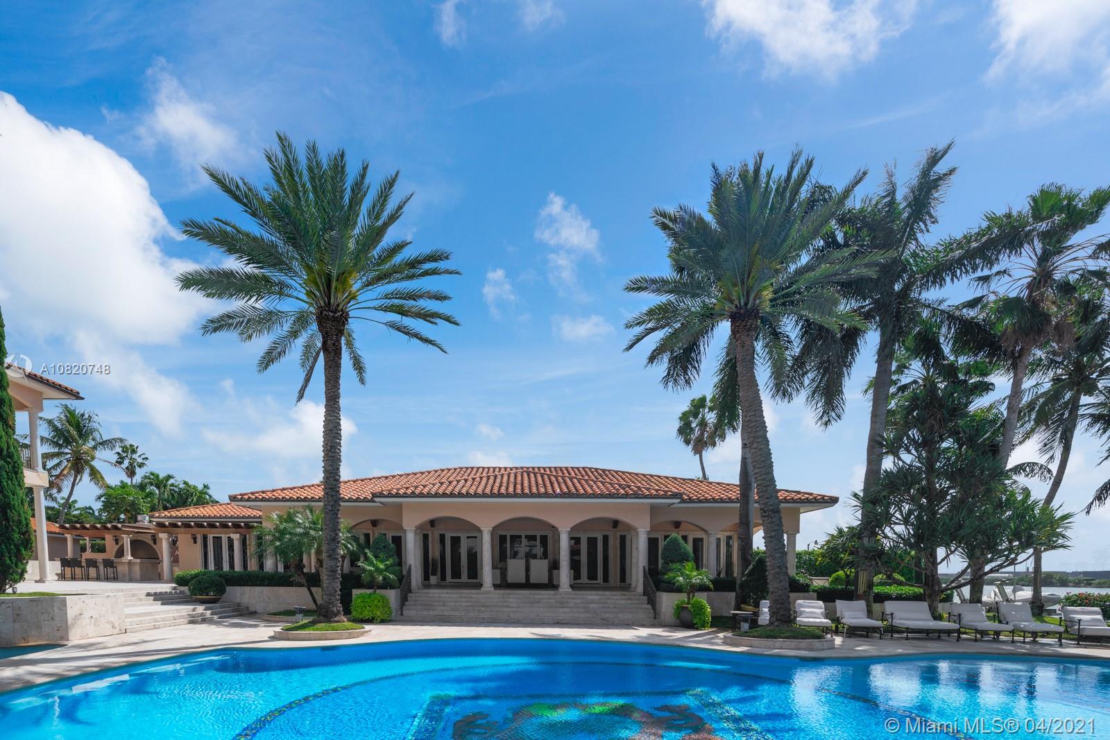 A remarkable palatial waterfront estate located on the estate section side of guard gated, Palm Island. This property sits on 2, 30K SF lots for a combined 1.5 acres and 200 feet of waterfront. A boater's dream! The property boasts 14,000 SF. The main house is 6 beds, 7.5 baths with home theater, chef’s gourmet kitchen & formal dining room. A 4 car garage with a 2 bedroom apartment sits above. Separate pool house, perfect for entertaining with an onyx bar, steam showers, his and her cabanas, and full gym. Offering the best of the sophisticated indoor and outdoor lifestyle enjoy spectacular vistas of cruise ships, Biscayne Bay, and Miami's gorgeous skyline.