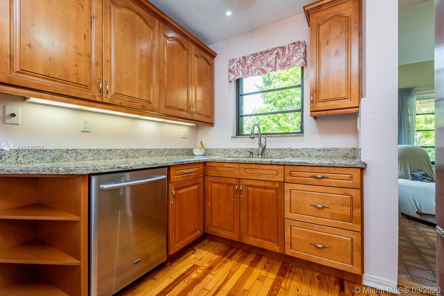 OPEN SAT, 4/25 from 1-3 PM. Miami Shores 1940's “Charmer” Welcomes you home! This is what everyone is looking for and hard to find… Original Art Deco features preserved in the decorative exterior masonry facade, in the formal dining room with curved walls and niches with shelves, in the folding glass french doors dividing the living room and family room/sun room, and in archways & decorative trim tiles in original bathrooms. There is a working fireplace w/Deco touches as well. Meticulously maintained over the years. Gleaming wood floors. On a quiet street on a Spacious corner lot and fenced yard.True 3 bedrooms (2 of them accommodate king-size beds!) plus full one car garage...good storage! Kitchen has been updated with solid wood cabinets & stainless steel appliances. A must see!