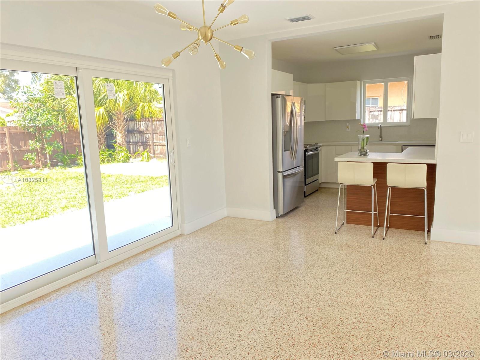 Absolutely sensational West HIALEAH home in move-in condition! Find yourself in this perfectly groovy mid-century home stunningly renovated from top to bottom with Permits. It offers a ton of charm and character beyond what is typical. This is a chic home with restored Terrazzo flooring throughout all areas, a beautiful energy in a majestic setting with plenty of light through massive floor to ceiling windows, updated designer kitchen with corian quartz countertop and stainless steel top of the line appliances. The home enjoys new bathrooms, A/C, a driveway, one car garage, laundry room, impact windows and doors. A delightful rear patio, with fruit trees and cemented deck is ideal for outdoor entertaining (plenty of room for pool). This offering is not expected to linger on the market!