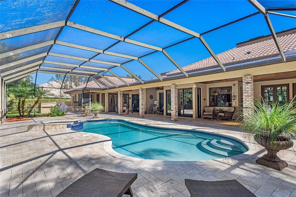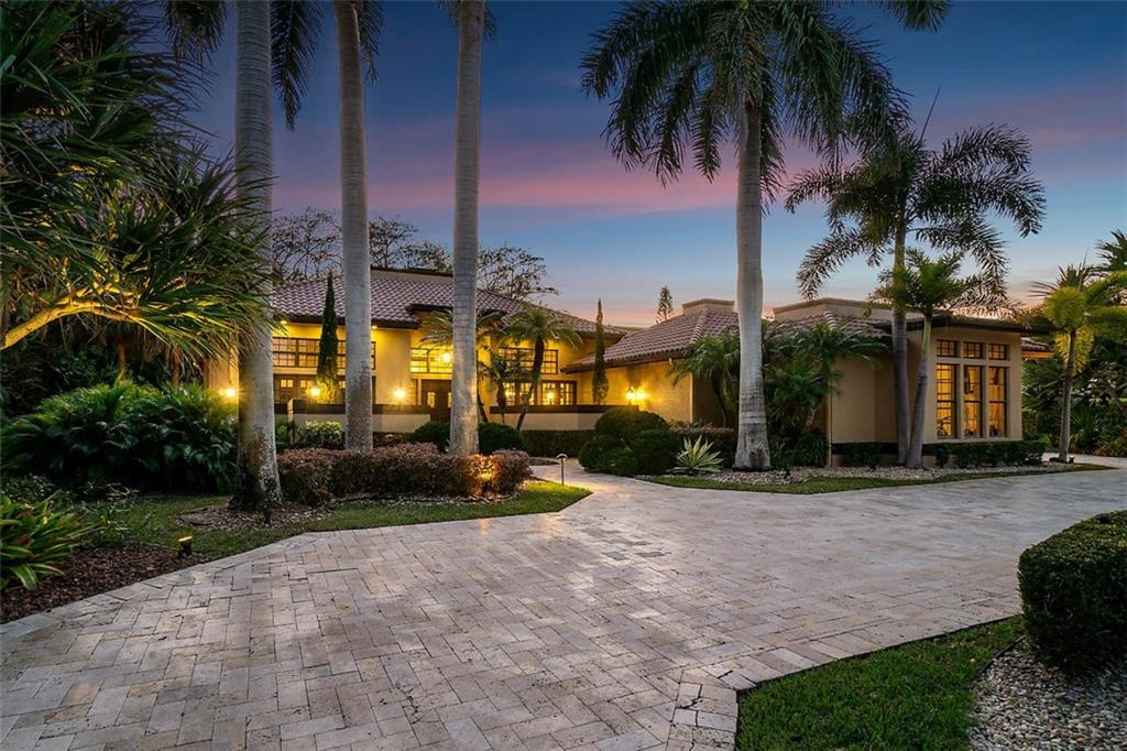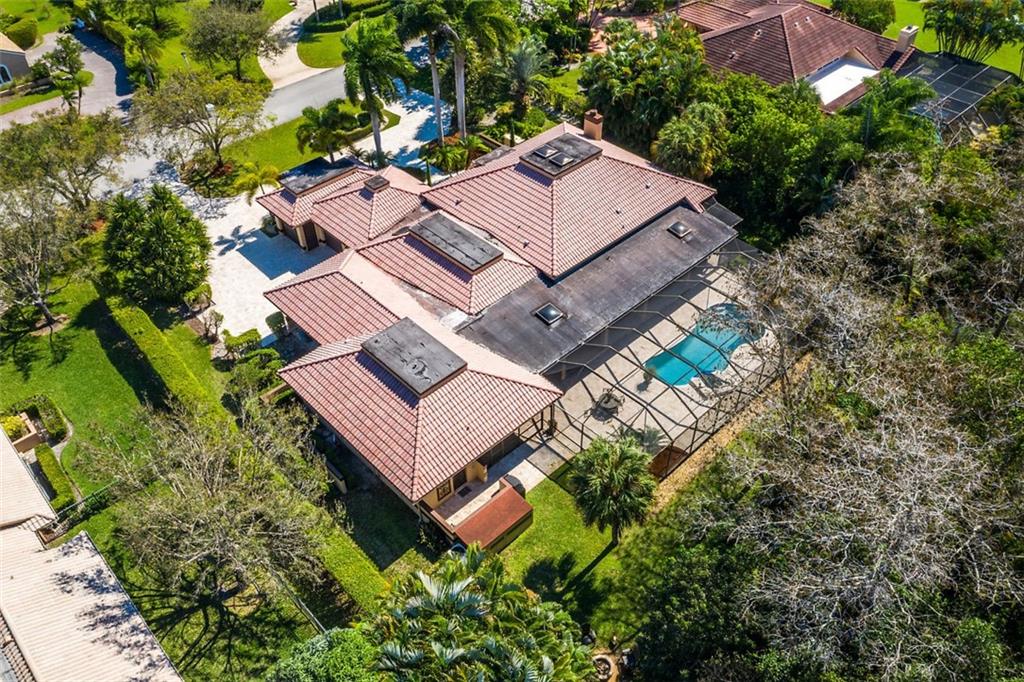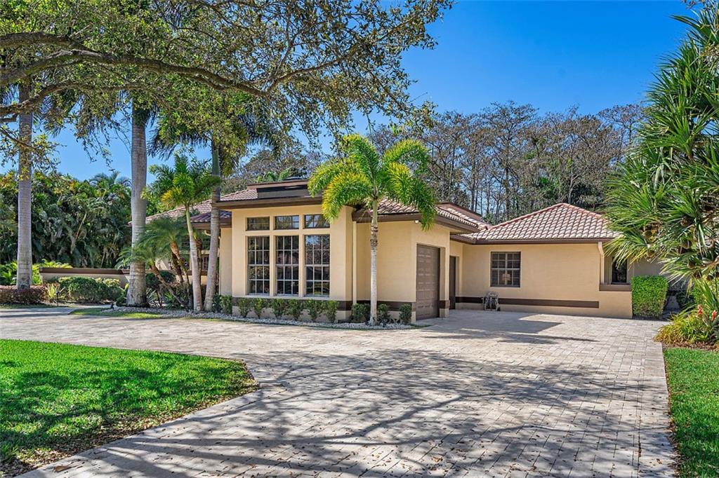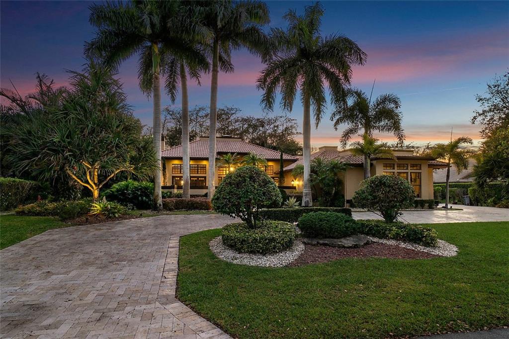 Quite Simply a Beautiful Home. Behind an impressive guard gated entrance, is one of south Florida's most prestigious communities. Within this community & sited on it's most private lot, bordering a lush preserve & on a quiet cul-de-sac street, is this stunning estate! Impressive curb appeal w/a sprawling front lawn, manicured landscape & expansive marble paver driveway! Fabulously large great room surrounded by walls of windows & french doors leading to intimate courtyards/terraces & the huge resort style pool area. Offerings: Large island kitchen, Luxurious master suite w/spa like bathroom, Huge secondary bedrooms (3 w/en-suite bathrooms), hand scraped wood floors, media room, fireplace, lanai w/cedar ceiling & oversize heated pool w/spa. Gorgeous & tranquil indoor/outdoor living spaces.