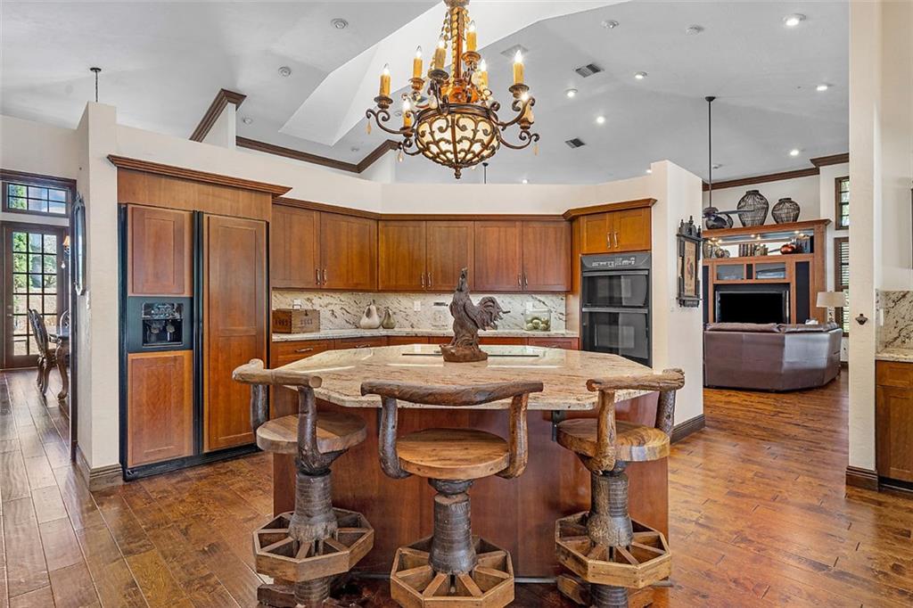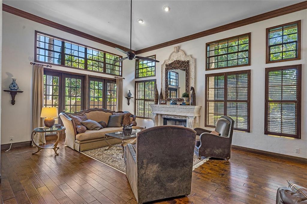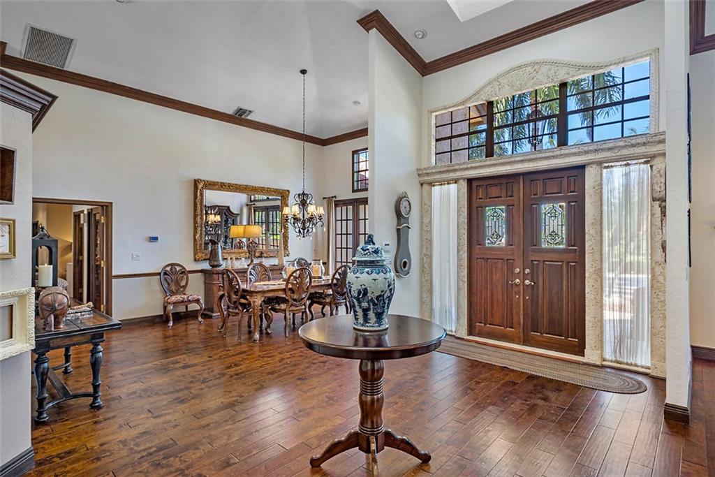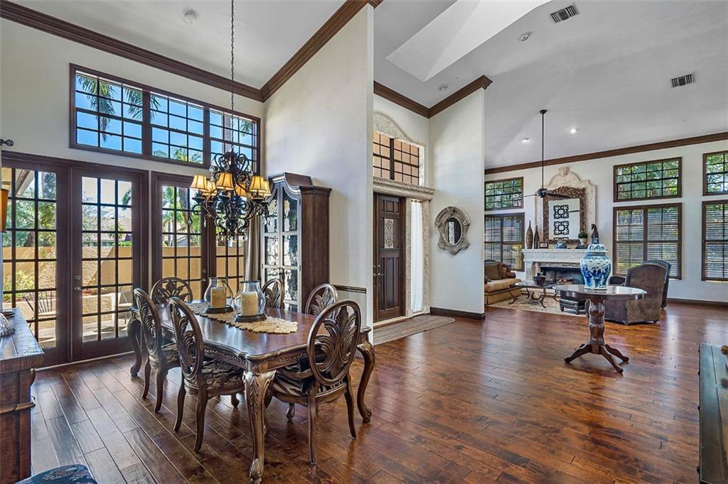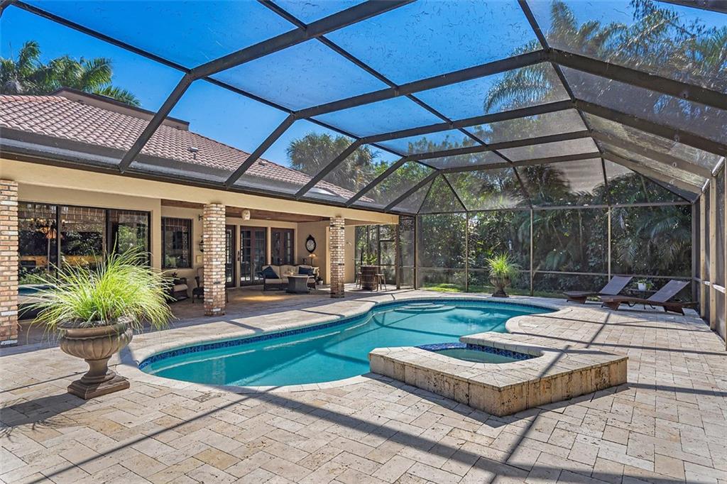 Quite Simply a Beautiful Home. Behind an impressive guard gated entrance, is one of south Florida's most prestigious communities. Within this community & sited on it's most private lot, bordering a lush preserve & on a quiet cul-de-sac street, is this stunning estate! Impressive curb appeal w/a sprawling front lawn, manicured landscape & expansive marble paver driveway! Fabulously large great room surrounded by walls of windows & french doors leading to intimate courtyards/terraces & the huge resort style pool area. Offerings: Large island kitchen, Luxurious master suite w/spa like bathroom, Huge secondary bedrooms (3 w/en-suite bathrooms), hand scraped wood floors, media room, fireplace, lanai w/cedar ceiling & oversize heated pool w/spa. Gorgeous & tranquil indoor/outdoor living spaces.