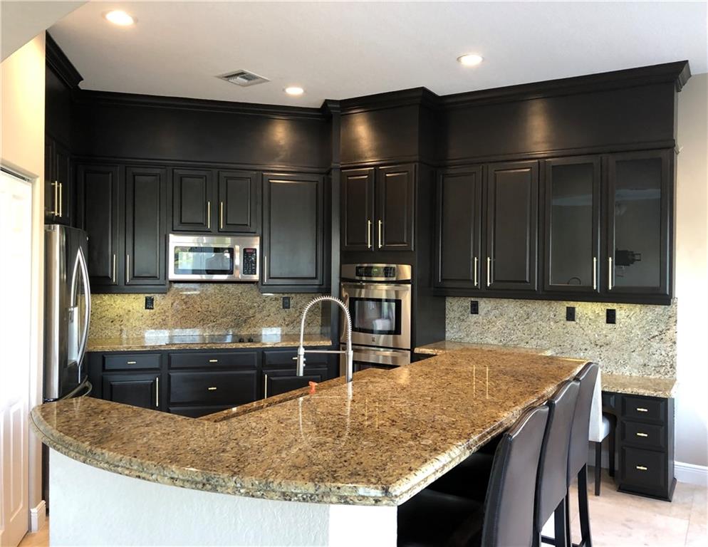 Beautiful house with a rarely available backyard. Oversized pie shaped lot in a cul-de-sac overlooking a lake (13,000+ sf). Large custom made swimming pool with huge travertine deck. Property fully remodeled recently. Travertine floors downstairs and wood floors upstairs. Brand new kitchen cabinets, granite countertops and stainless steel appliances in the kitchen. All new custom interior closets. Both A/C systems were recently changed (2018 & 2014). New eco friendly tankless hot water heater. One bedroom with full bath downstairs. Ample 3 car garage. Recently painted exterior. Nice Clubhouse with many amenities... swimming pool, gym, tennis and basketball courts, playground, lake beach, etc. Very low Association dues. Do not miss this one!