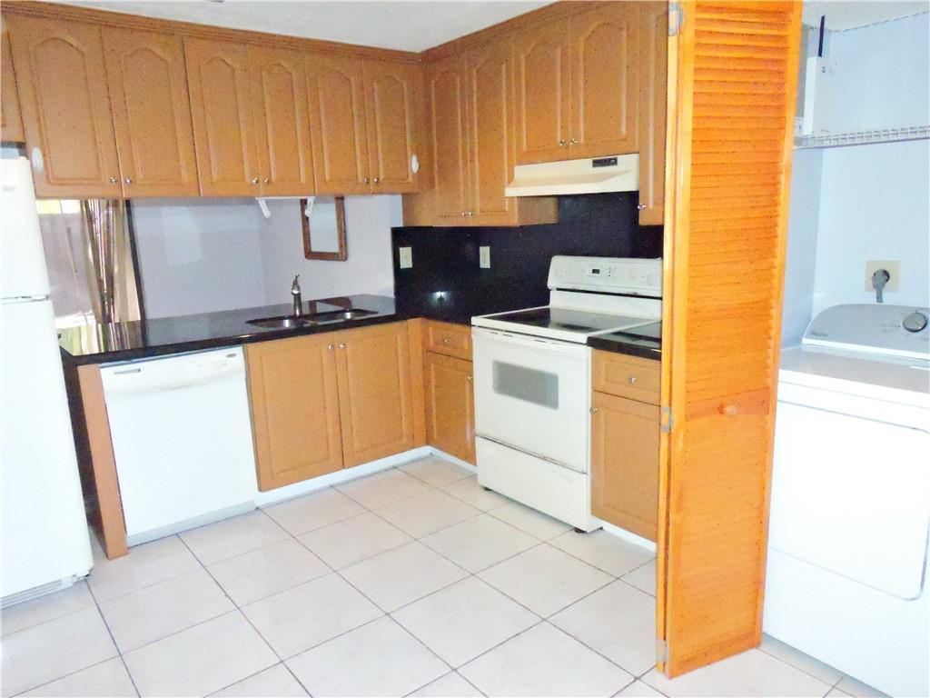 NO RENTALS FIRST 1st YEAR OF OWNERSHIP. FHA Approved! Only need 3 1/2% downpayment. Quiet neighborhood tucked away in a central location of Pembroke Pines. Private fenced entry to this bright and airy 3 bed 2 1/2 bath townhouse boasts a large kitchen with granite countertops, double stainless steel sink and pass through to dining room. Sliding glass doors from the kitchen to the private utility nook. Full-size washer & dryer conveniently located in the kitchen. The separate dining room opens to the large fenced patio perfect for celebrations or quiet time. Master bedroom with private balcony, remodeled bathroom with double sinks and tiled shower. Spacious 2nd bathroom with shower/tub and large vanity counter for storage. HOA includes insurance for the roof and exterior of the building.