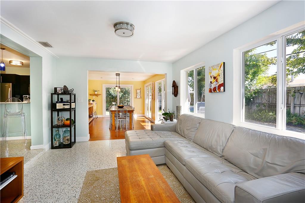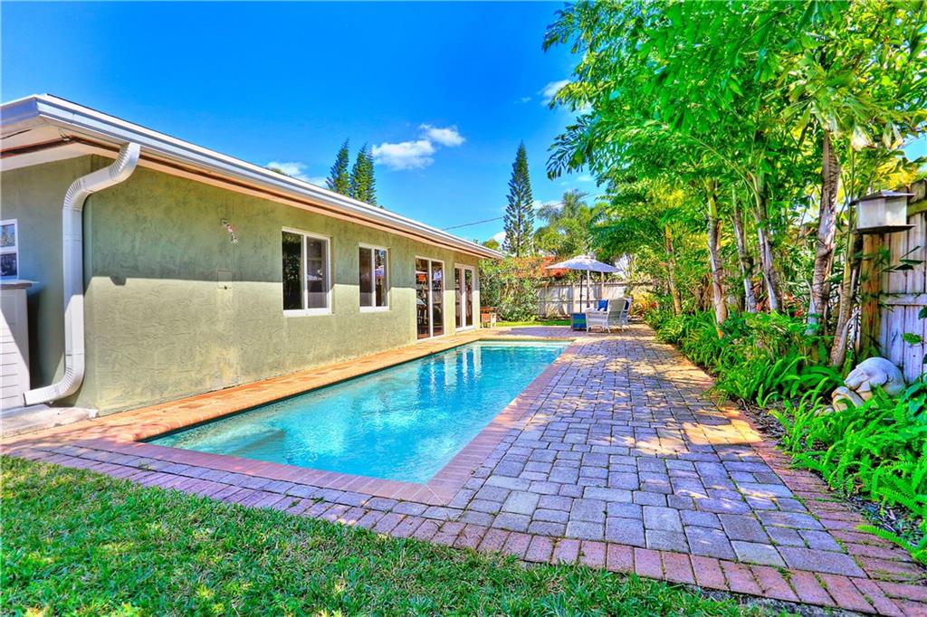 Tastefully updated pool home located in east Fort Lauderdale. This cool home features modern finishes, while maintaining some of its original charm such as the polished terrazzo & concrete floors. Loaded with upgrades including a fully remodeled kitchen with stainless steel appliances, dark wood cabinets, & quartz counter tops, AC & ducts replaced 2014/2015, brand new interior doors, impact doors & windows throughout, main drain line plumbing under house changed to PVC in 2014 (cast iron pipes removed). Pool & outdoor shower are just 7 years old. Fenced yard with pavers & a relaxing fountain by the pool, surrounded by greenery. 2 zone well sprinkler system. 5' x 8' storage room. Only 5 minutes from the beach. Quiet street close to shopping, dining and much more.