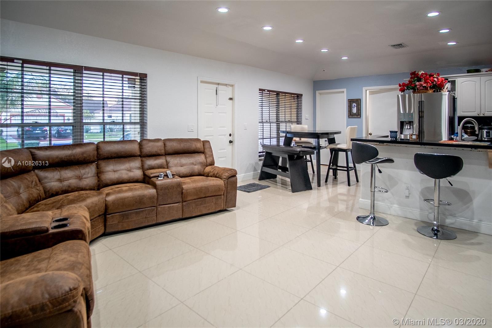 Very well maintained home, with several upgrades through current ownership. Less than one-year-old AC. Open concept kitchen. Originally 2 Beds/2Bath, currently the garage has been converted into a 3rd room that is being used as a bedroom for the kids and a laundry room. Covered terrace. Wide side entrance for vehicle access to the back yard, water well for sprinkles, hurricane shutter throughout the house. Low HOA $100/month includes security 24h, two swimming pools, tennis courts, and a park. Owner Motivated