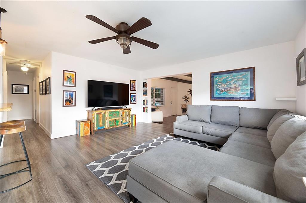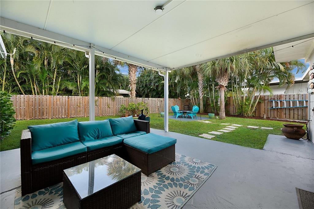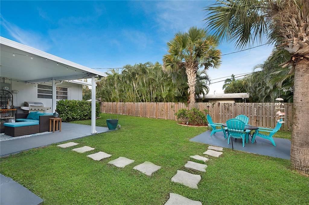 This nicely appointed 4/3 sits on an oversized lot East of Federal and boasts a massive fenced in yard with plenty of room for a pool. The main living space is open while the bedrooms offer a split plan separating the main bedrooms from a private guest suite/office. The home has been extensively remodeled with a new front porch and impact double entry doors, New A/C, new water heater, all new electrical, renovated bathroom w/ oversized tub, new landscaping, new shadowbox fence for the backyard w/ a 12' gate for the carport, new appliances, sink/faucet, and backsplash in kitchen, LED lighting throughout, new flooring and trim, driveway recently sealed, and recently painted inside and out. Plus its walking distance to the beach, dog park, Greg Norman designed golf course, restaurants & more.