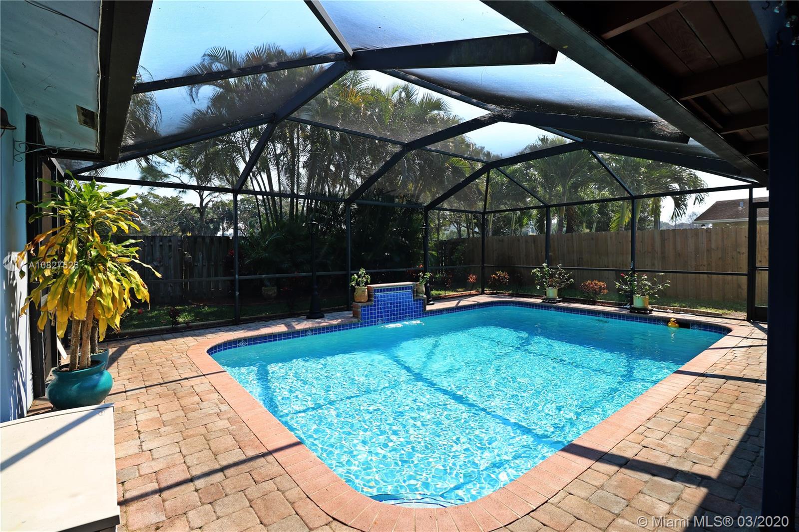 Excellent central location in the heart of Davie, enjoy the South Florida tropical lifestyle in this one-story pool home, features three bedrooms, two baths, family room, two-car garage, split floor plan, screened heated pool and lanai, french doors, fenced patio, upgraded kitchen granite counters, no homeowners association, close to golf courses, universities, schools, shopping, dining and much more. ** American Home Shield Home Warranty
