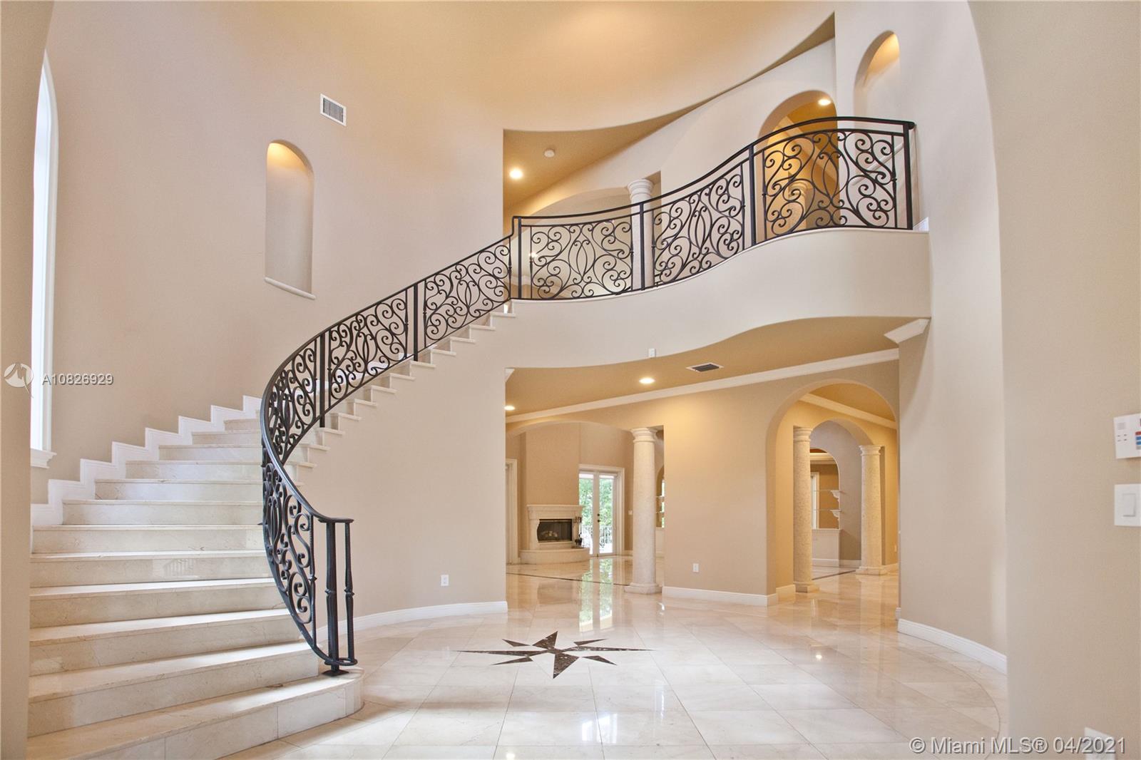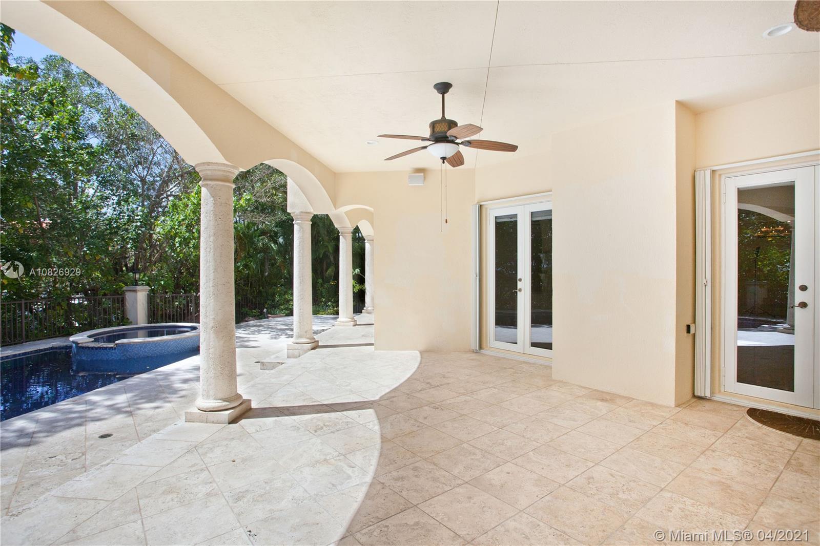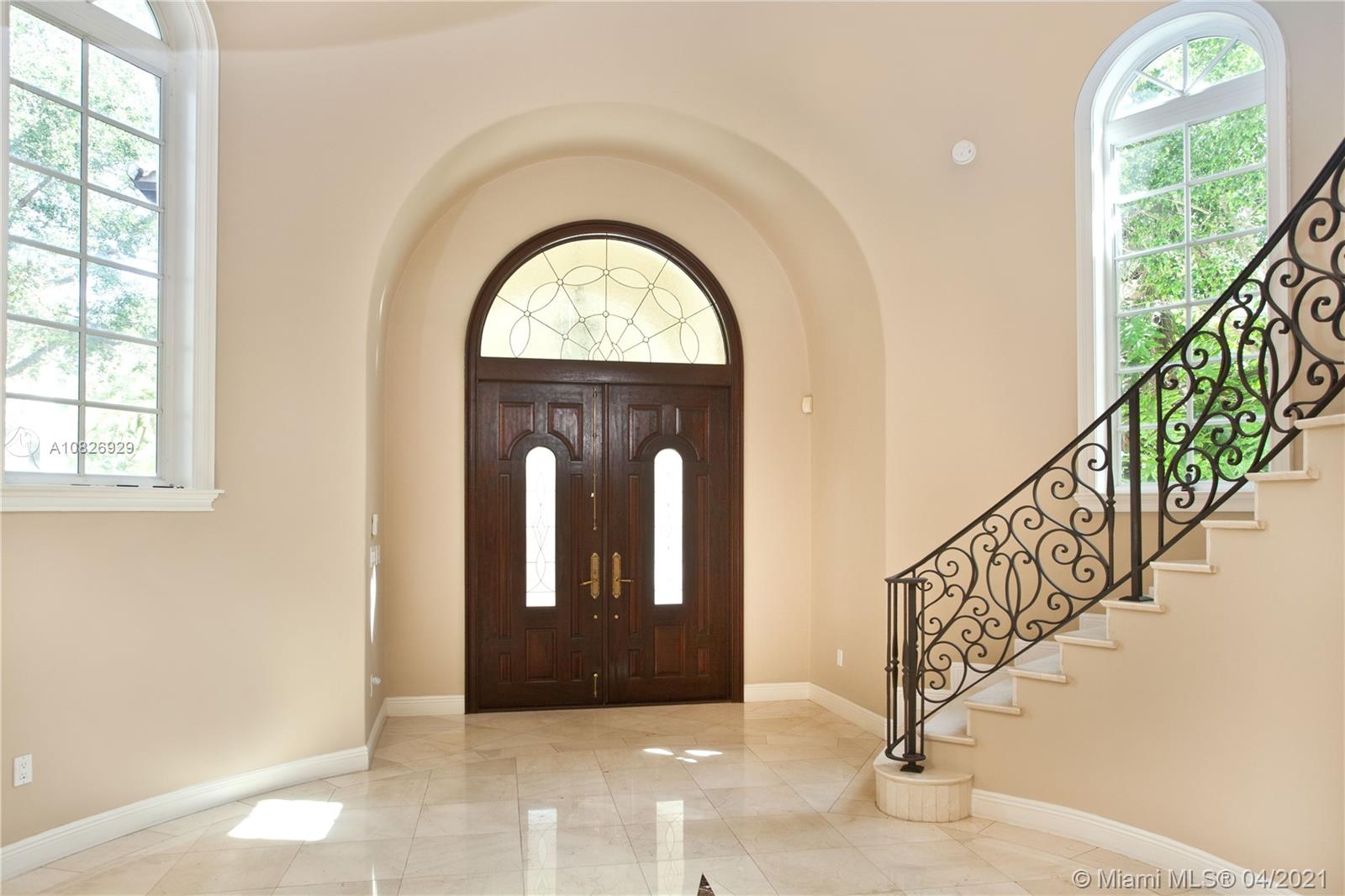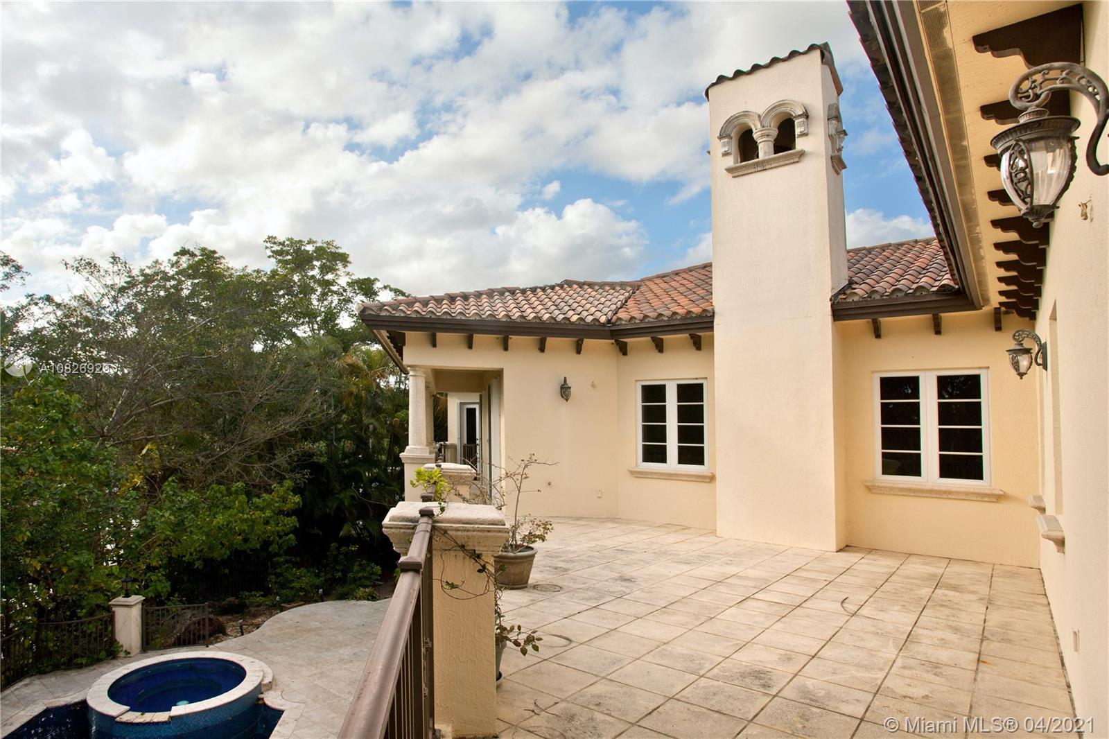 NEW PRICE! No bridges to Bay in Islands of Cocoplum. Gated for privacy on 20,862 sq ft lot on cul-de sac. Porte cochere & double door opening to foyer, high dome ceiling & winding staircase, elevator, formal living rm w/fireplace & formal dining rm. Family rm & large kitchen w/breakfast area. Across the living rm, there are a powder rm, studio/office, large guest suite, cabana bath. On 2nd floor, the private spacious main suite features 2 walk-in closets, 2 vanities, his & her water closets & large terrace. Bedrm wing features 3 en-suites & a den/office. The patio has a large covered terrace, pool & dock. Marble & hardwood floors. 3-car garage, Laundry rm, staff qrtrs. Impact windows and accordion shutters. AS-IS dock, needs work.