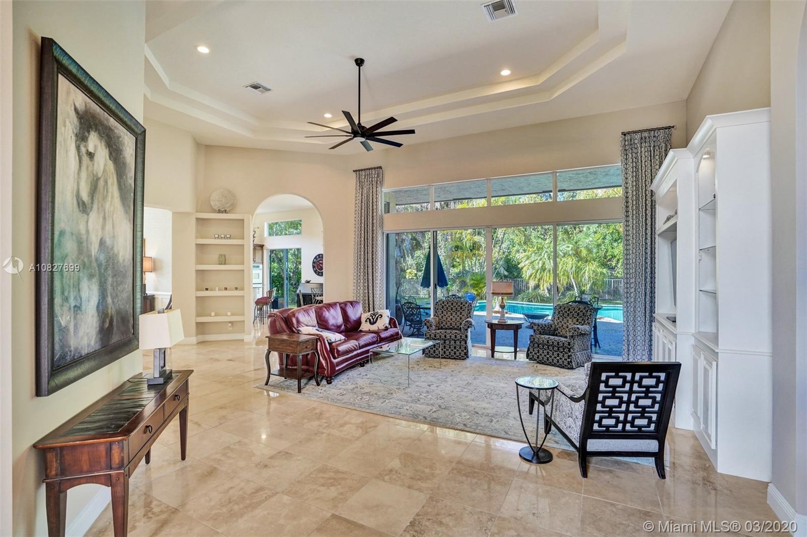 Immaculately maintained 4bd/4bth executive home. Home features polished marble floors, soaring ceilings with crown molding and gorgeous new light fixtures and ceiling fans. Gourmet kitchen has newer stainless steel appliances with double ovens . Home also has resurfaced pool and new pool heater with transferable warranties, new interior and exterior paint and gutters, and plantation shutters in most rooms. Custom shelving was added to garage and master bedroom closet. Library features custom built book shelves. Living room has recently built custom entertainment center. This beautiful home borders a nature preserve, so you can swim in your own private paradise every day. You won’t believe how much this home has to offer – Once you see it, you will never want to leave!
