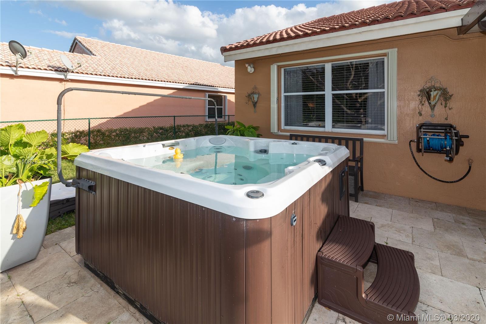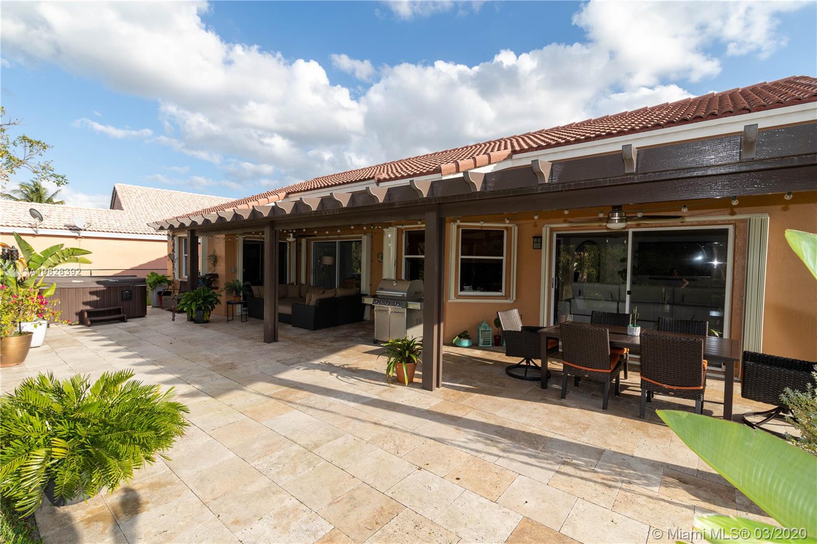 Rarely available home in the community of Alhambra. Remodeled home that sits on an oversized 10,395 sf lot, no backyard neighbors only a peaceful preserve. Open living areas throughout with high vaulted ceilings, travertine marble floors, recently painted interior, spacious kitchen with breakfast nook & stainless steel appliances that overlooks a large Florida room. Newer A/C, hurricane accordion shutters on windows & impact front door, water heater, patio with 1,000 sq ft of outdoor travertine & covered patio roof, 6 person hot tub is included in the sale. Large master bedroom with new master bathroom & large walk in closet. It’s a must see! Great neighborhood & Excellent A+ Schools.
