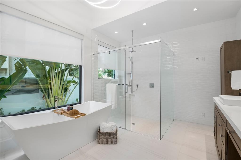 New Construction delivered January 2020 by award winning Innovative Designs & designed by Ames Int'l Architecture. Builder offering a $35,000 incentive for design and or towards closing costs to buyer. 5 Bedroom 5 Full Bath 2 story estate situated on a 75' wide lot. Features include 12' ceilings in main living area including master bedroom on the 1st floor. 3 bedrooms on 2nd floor & guest bedroom on 1st floor. Chef's kitchen includes Wolf gas cooktop & oven, Sub-Zero refrigerator & microwave, Asko dishwasher & quartz countertops. Covered summer kitchen & entertaining area overlooking amazing 13x37 pool w/sun shelf & self-brimming spa. Monolithic Steel Stringer floating staircase w/solid wood treads & steel picket railing w/wood handrail. Garage has ability to park 2 cars plus golf cart.