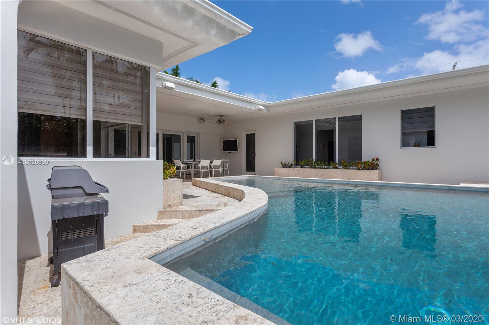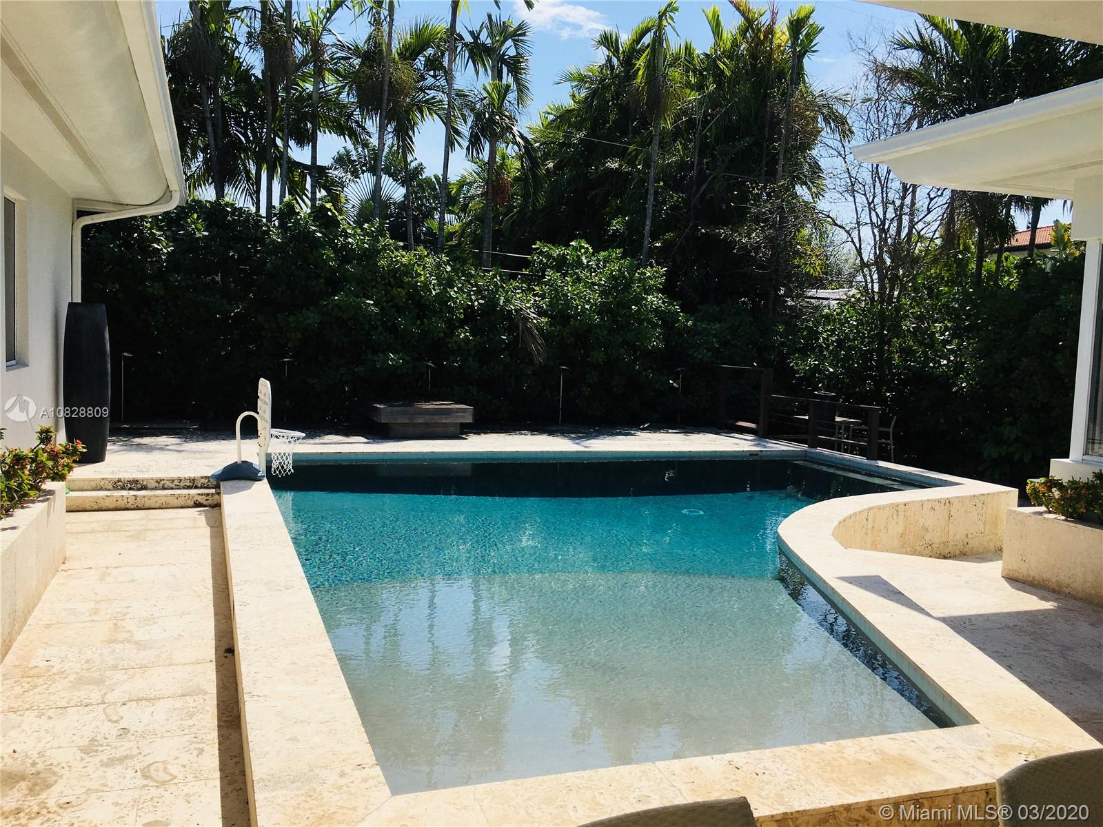 MIMO RESIDENCE ON OVER SIZED CORNER LOT IN BAY HARBOR ISLANDS. TONS OF NATURAL LIGHT, ARCHITECTURALLY DREAMY WITH A " FLAIR" & NICE LINES/ CURVES, TERRAZZO & CUBAN TILE FLOORS IN MINT CONDITION , ALL ROOMS & ENTERTAINING SPACES SURROUND POOL AND PATIO AREA, BEAUTIFUL EAT-IN KITCHEN EQUIPPPED WITH GAS & HIGH END APPLIANCES PLUS LARGE BUTLERS PANTRY, FAMILY/MEDIA ROOM WITH BAR & POWER ROOM & OPENING TO REAL HALF BASKETBALL COURT, LOTS OF STORAGE , IMPACT WINDOWS AND DOORS & ALL HEDGED IN FOR PRIVACY.