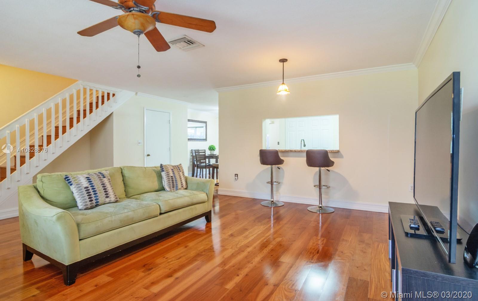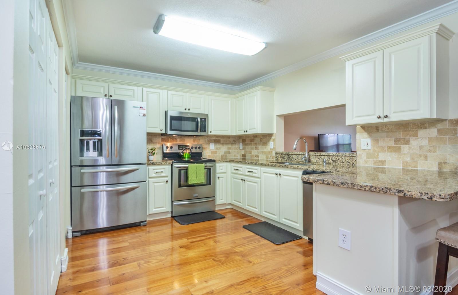 Open, Modern & Spectacular 3 Bedroom 2 1/2 Bathroom two-story townhome in Pembroke Pines. Step out of the lovely courtyard setting into this amazing home with beautiful hardwood flooring throughout! The remodeled kitchen is breathtaking with Stainless Steel appliances, granite countertops, & endless space to move around, cook and entertain! The sliding doors lead to the private brick-layered area with a storage unit. Perfect for Barbeques or relaxation. The Master suite is very spacious with two closets! Accordion Shutters! Water Heater, Microwave and Washer 2019 and the AC is 2 years old. Association fee $150 per month! The location could not be any better with all the shops one can think of & also being in close proximity to the major highways and hospital. This is a definite MUST SEE!