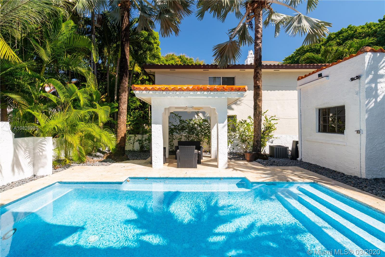This turn-key, charming 1920's spacious Old Spanish 3/2 main house has a separate, 1/1.5 spacious pool-side 2 story guest house fully renovated in 2005. Brand new impact glass windows in main house which has a large kitchen, living room with original oak floors and fireplace, 2 bedrooms 1 bath downstairs, huge master suite upstairs with large sitting room and spacious, all remodeled master bath and walk-in closet. Sparkling pool & gazebo. Carport. Best possible walk-ability score for this home which is just a few steps away from the urban center of Coral Gables with its world class restaurants, art galleries, shops, bookstores, sidewalk cafes and Fortune 500 business centers
