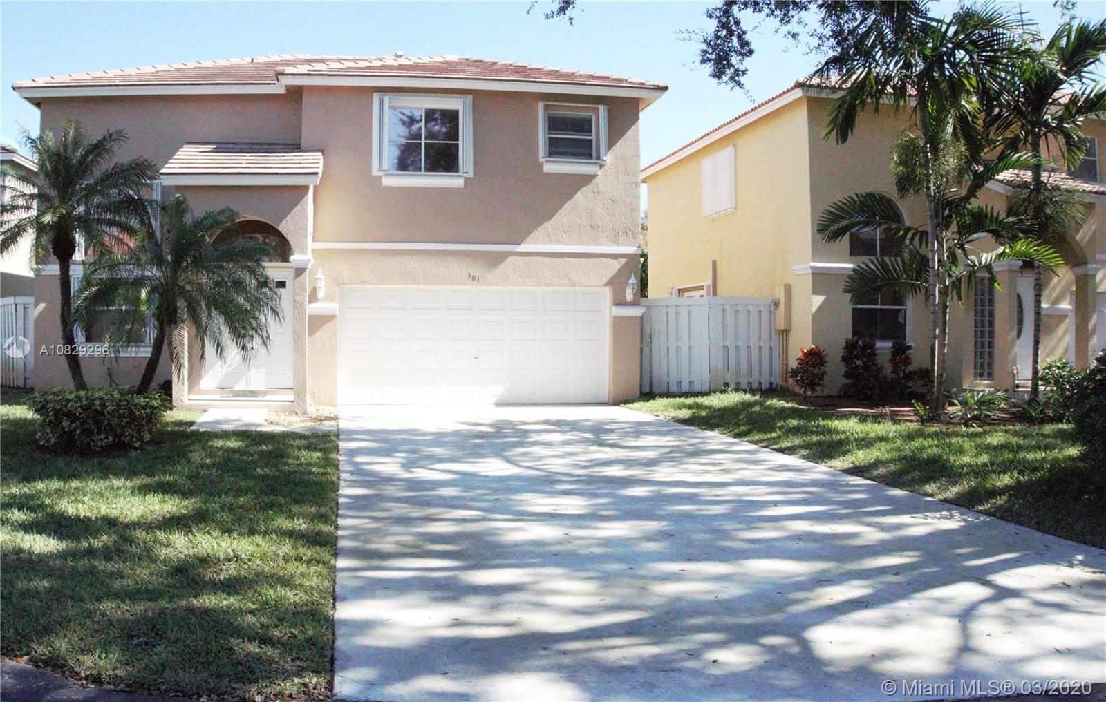 Extra clean 3/2.5 centrally located in Pembroke Pines! Updated kitchen with new appliances, new A/C, water heater replaced less than one year ago. Spacious fenced in backyard with fruit trees. Short Walk to community pool and Clubhouse. Close to shopping and entertainment. Easy access to Turnpike, I-75 and 826. The new Pines City Center is nearby. Property being sold "AS-IS".
