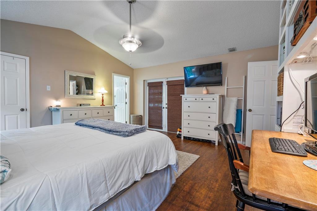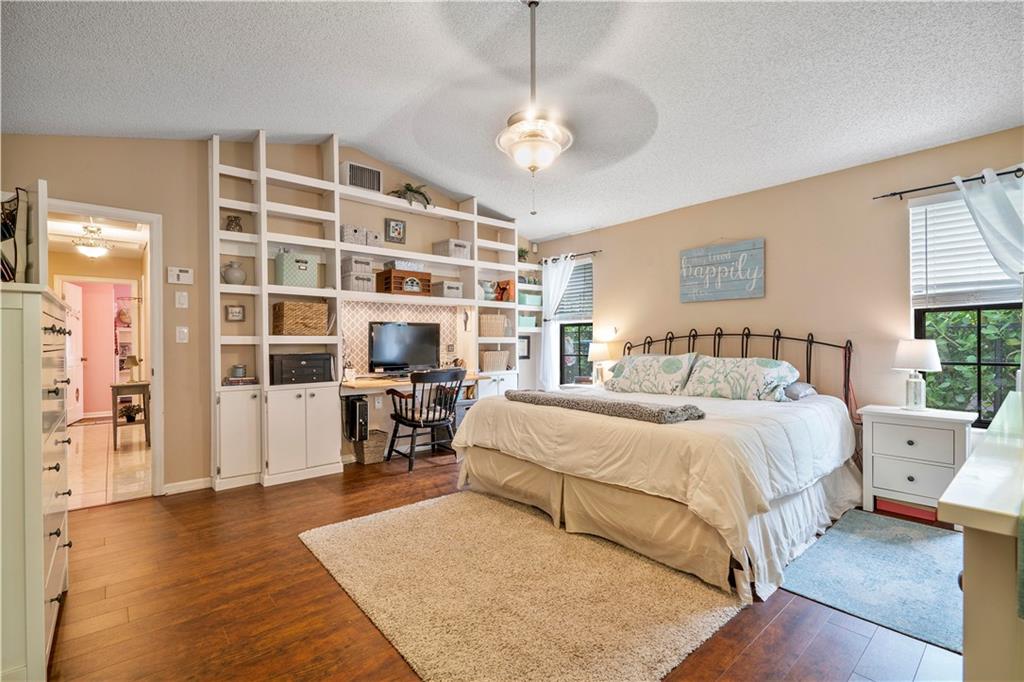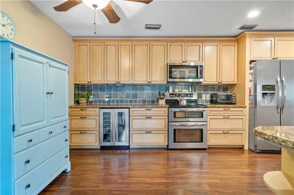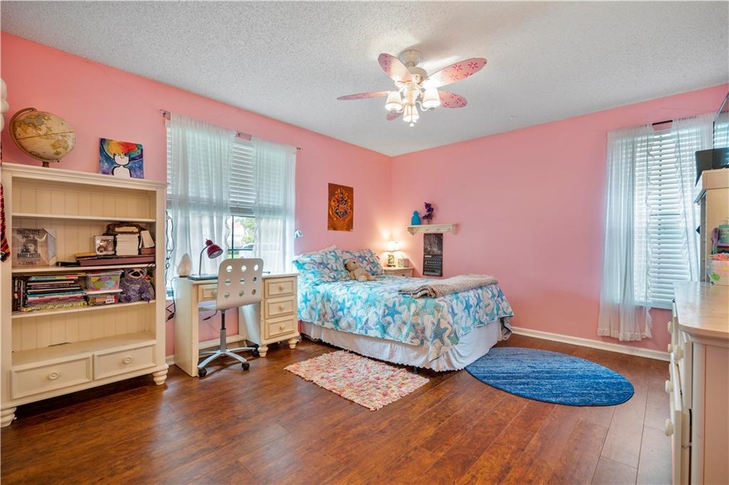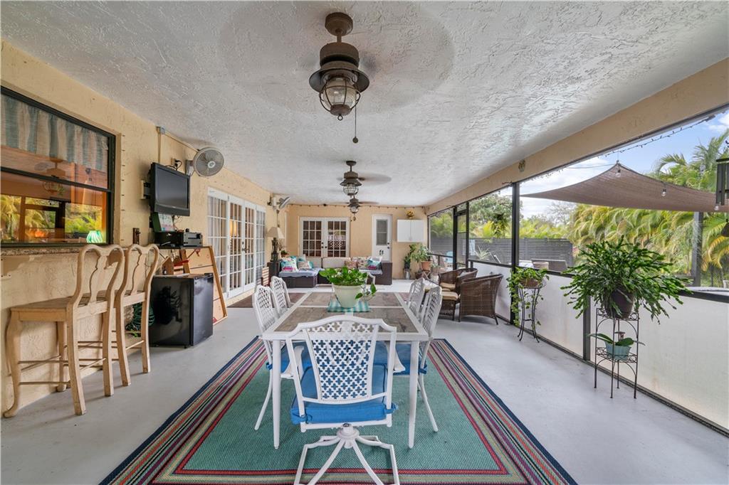 Spectacular pool home on canal. 4 bedrooms, 2 1/2 baths with formal living and family room. Updated kitchen with granite counters, wood cabinets and SS appliances with wine fridge. Tile and wood floors throughout, surround sound, recessed lighting, french doors and large master suite with spacious closet. Extended Florida room for entertainment. Waterfall salt water, solar heated pool with play set and yard space. Security System and cameras, fenced yard, landscaped lighting, hurricane shutters and garage impact door. Total privacy in your backyard oasis. Cabana baths with outside shower. A/C 10 years, Roof 8 years, hot water heater 4 months.