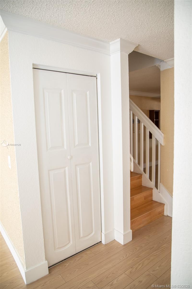 Beautiful and spacious 2-story townhouse, ready to move in, located in the quiet community of Doral Landings West. Remodeled kitchen, with stainless-steel appliances. Wood flooring throughout the entire house, driveway for 2 more cars. Fenced back patio and well-maintained garden. Huge master bedroom with walking closet. Double vanity and separate bathtub and shower in master bathroom. Internet and cable TV included. Gated community with 24/7 security guard, pool, playground and green area with walking path.