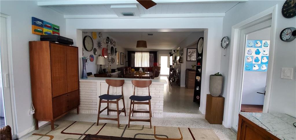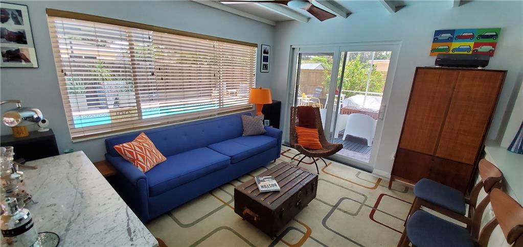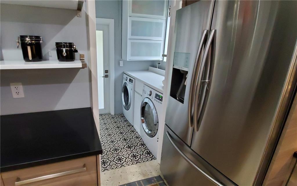 This beautifully remodeled Park East 2/1 home features new kitchen w/high end stainless steel appliances including convection oven, refrigerator w/dual ice makers and quartz countertops and loads of storage, Remodeled bathroom with Italian tile, New tankless water heater, New front load washer/dryer with steam. Restored terrazzo throughout. Circuit breaker. New meter and Circuit breaker w/ additional grounding added 2019. 240v exterior plug for electric car charging (charger does not convey) Newly resurfaced pool with new water tile and new pool heater. Impact windows and doors. Walking distance to Publix, Target and restaurants. Easy access to major highways. Just minutes from the the beach. 4 Swann security cameras, hard wired. Privacy fence. Storage Shed and built in storage in carport.