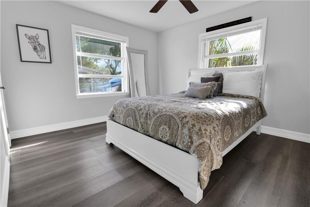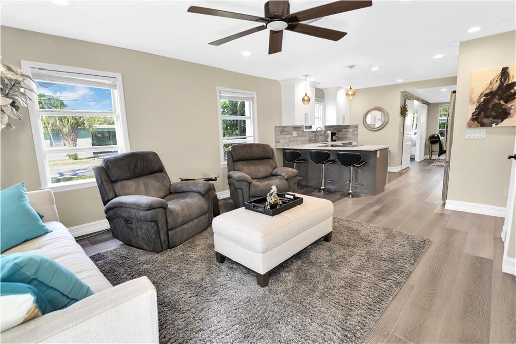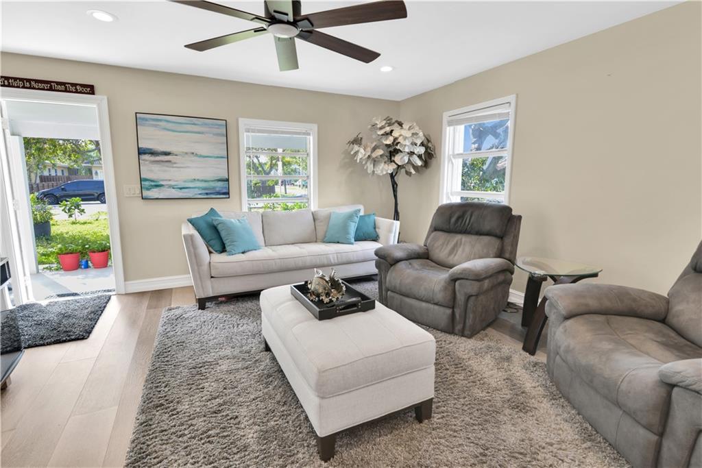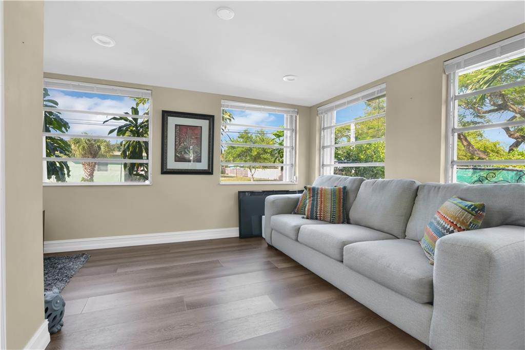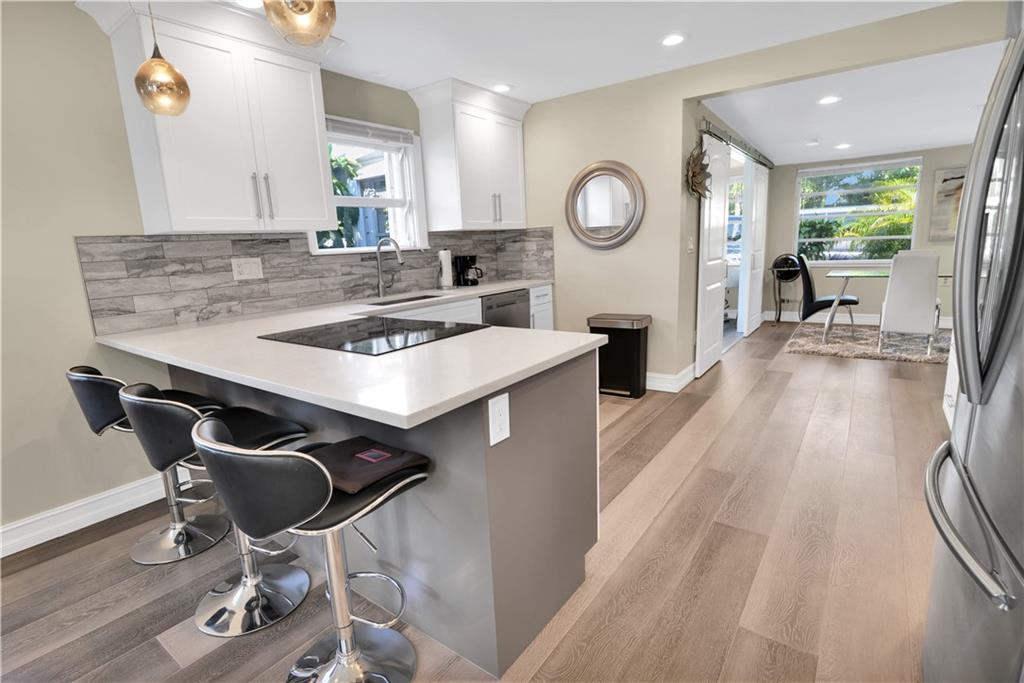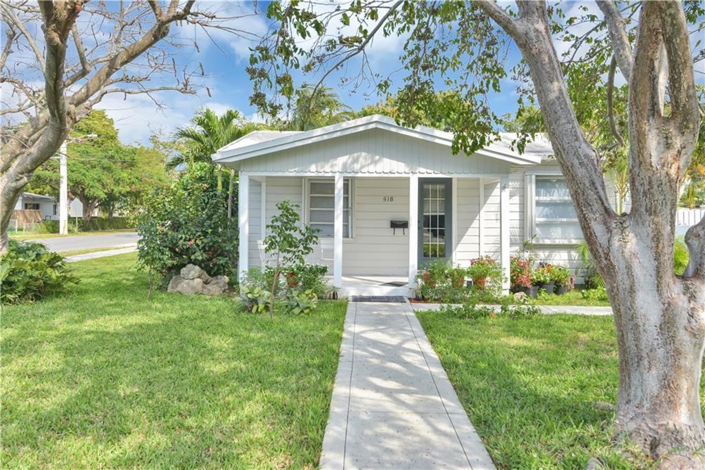 Stunning GEM with lots of room for entertaining your family and friends! This 3/2 single family home is situated on a corner lot in Old Pompano. Historically quaint exterior with completely remodeled interior that delights all the senses! Brand new flooring throughout, quartz counter tops and top of the line appliances in kitchen. Barn doors add a unique look to the bedroom. Both bathrooms are fully redone with new tile laid in showers. Master bath features a spa tub as well as double sinks. New roof currently being installed. Large laundry room with full size units. Lush mature landscaping with mango and starfruit trees, as well as plenty of room for a pool. Accordion hurricane shutters on all windows. Very convenient location, yet quiet and peaceful. Your own little piece of paradise!