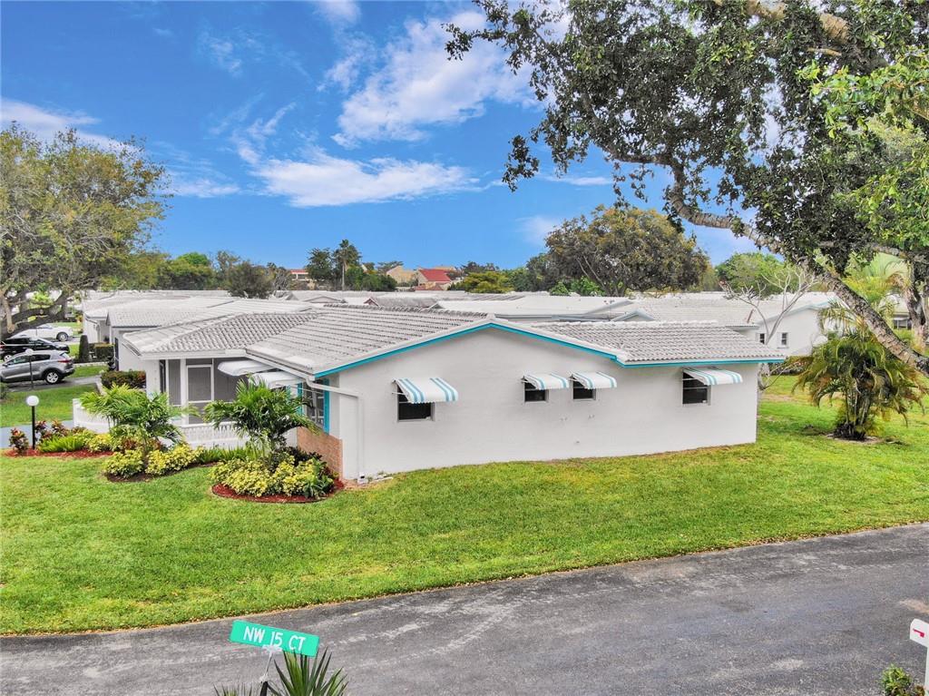 Welcome home to this lovely updated Admiral model on a corner lot! Move in ready two bedroom and two bath home has laminate wood floors in the living and family areas with tile throughout. Updated kitchen with granite countertops, breakfast bar, pantry, and plenty of cabinets. Newer tile roof and AC! Accordion shutters and awnings. Walking distance to two heated pools, hot tubs and tennis courts. Main clubhouse has an auditorium, library, exercise room, card room, billiards room, meeting rooms. HOA covers roof, exterior paint, lawn care, and termite/pest control. Take the courtesy bus to the grocery, pharmacy, and even Sawgrass Mills. Neighborhood is centrally located and near several shopping plazas, restaurants, banks. 30 minutes from Ft Lauderdale Airport.