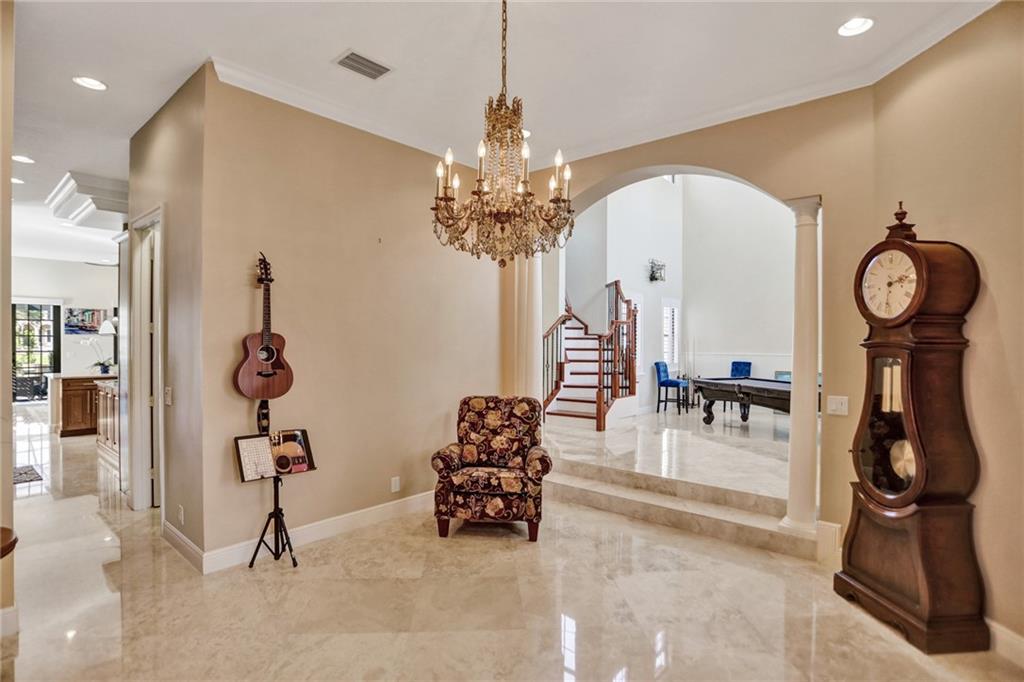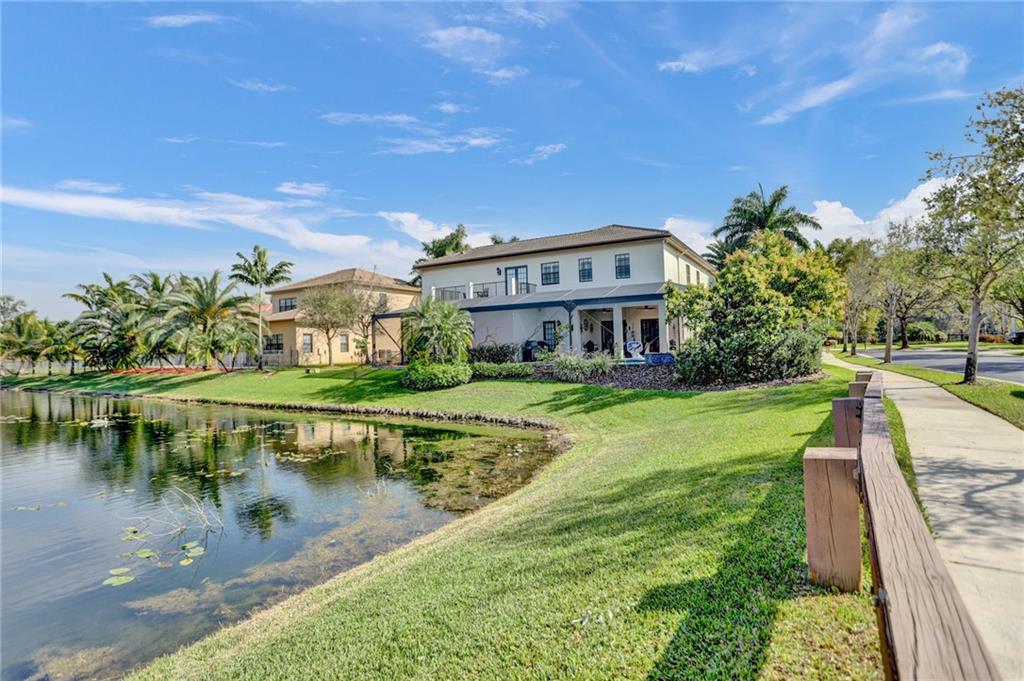 Parkland Estates 6 Bedroom 4 1/2 Bath lakefront pool home with over $110K in upgrades. Interior features include chef's kitchen with wood cabinets, cooking island, quartzite countertops and backsplash, stainless steel appliances, large walk in pantry, open layout and crown molding. Travertine floors, plantation shutters, large open family room, surround sound. Spacious master suite with sitting area, outdoor open terrace, walk in closets, master bath with marble and decorative mosaic. Exterior upgrades include impact windows and doors, 3 car garage, large driveway with courtyard area. Pool and patio area an entertainers dream. Panoramic screened in pool patio with views of lake, extended patio pavers, pool refinished with mosaic tiles, corner lot and lush landscaping.