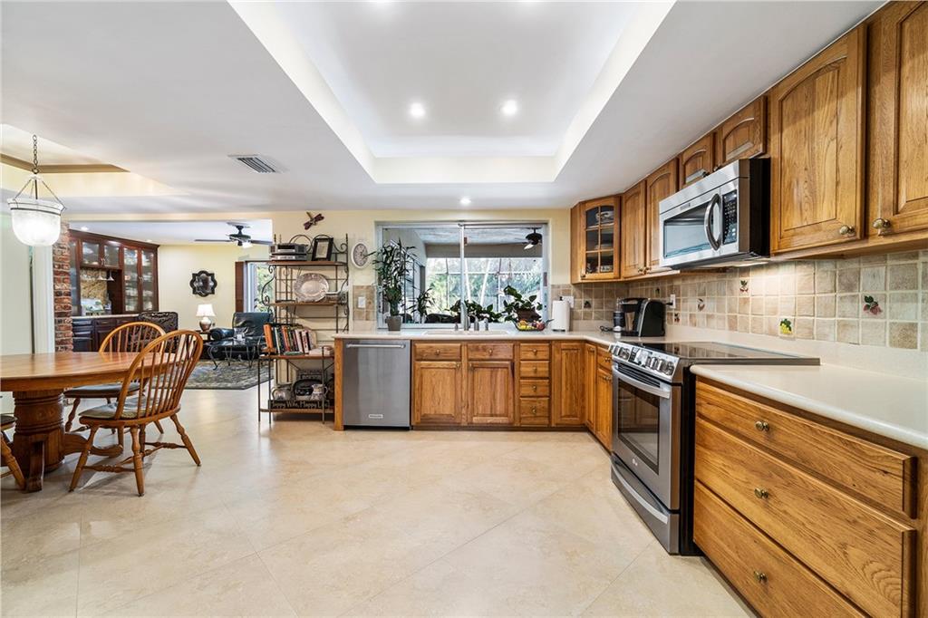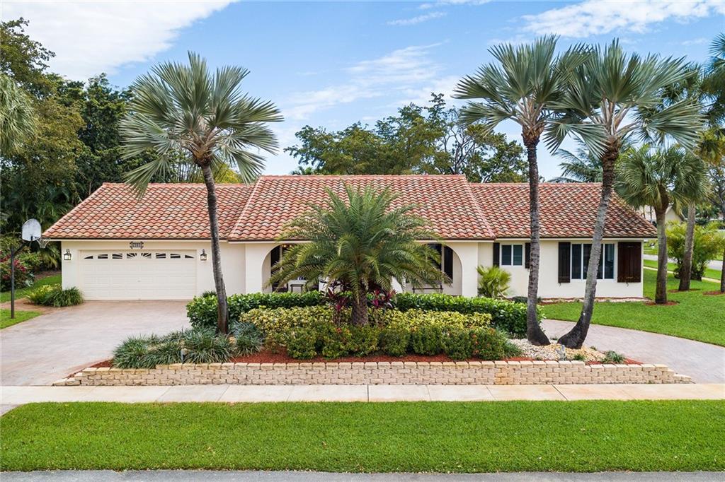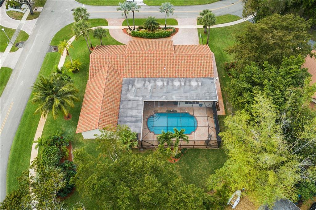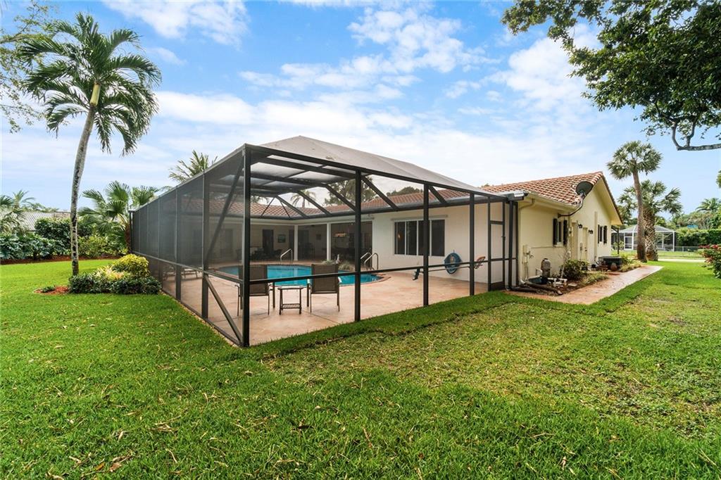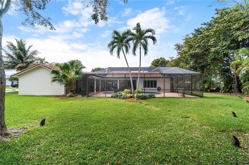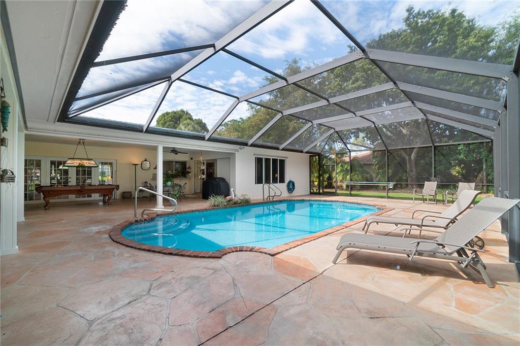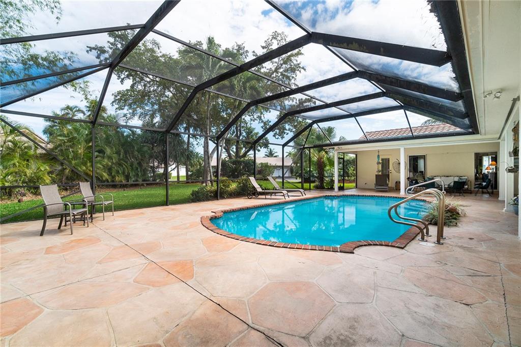 Beautifully renovated 5 bed, 3.5 bath home in the prestigious gated community of El Dorado Estates. 3200 Sq ft under air and almost half an acre lot, with rectified tile throughout, carpet in the bedrooms, and recessed lighting in family room, kitchen, and hallway. Newer appliances and W/D, barrel tile roof installed in 2017, and 2 carrier AC units. For added safety, this home features protection one home alarm system and impact windows and door throughout, except for back porch that has shutters to fully enclose. Perfect for entertaining, this property offers a screened in patio with a beautiful pool that was completely redone. Landscape lighting in front and back gives this home the perfect curb appeal. Community amenities include a clubhouse, playground, tennis and volleyball courts.