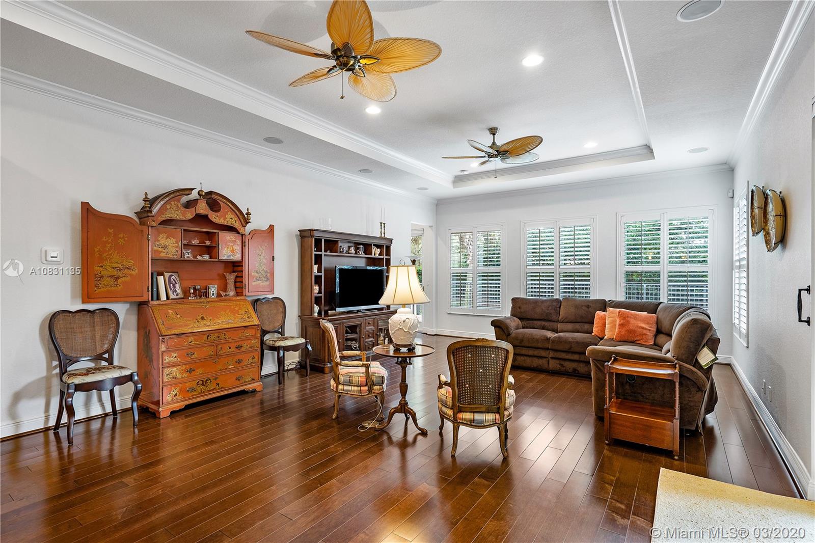Still easy to show at your convenience! Must see beautiful 4 bedroom, 3 Bath, 3 car garage Cypress Model in the Sawgrass Bay section of Heron Bay. The open floor plan with high ceilings allows for lots of natural light. This home features wood floors, crown molding, plantation shutters throughout, impact glass, a gourmet kitchen with natural gas cooktop, stainless steel appliances and upgraded cabinets, tray ceilings in multiple rooms, designer chandeliers, covered lanai, private backyard with free form pool and spacious brick paver pool deck, and more. Heron Bay is a great place to live with two clubhouses, resort style amenities and great schools. Make an appointment to visit Parkland and view this exceptional location and beautiful home. All bedroom carpeting and 1 a/c recently replaced