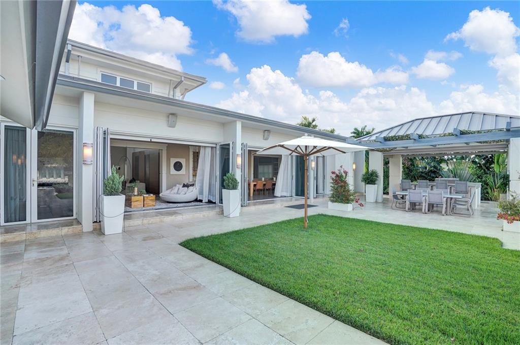 Spectacular one-story coastal modern home on one of the most exclusive waterways in Harbor Beach. Residence equipped with impeccable finishes, thoughtful interior design, 105 ft of water frontage on +/-140' wide canal, boat lift, and Azek composite dock. Eat-in kitchen with high end appliances, custom cabinetry and water views. Large master bedroom with vaulted ceilings, walk-in closet, dual vanities & soaking tub in master bath. Home built with NanaWall folding doors which seamlessly blend with the outdoor living area. Home also features lush landscaping, pool, spa, cabana bath, & outdoor summer kitchen with gazebo to enjoy the beautiful breezy days and nights. Private Harbor Beach Surf Club with 300 ft of beachfront & private marina membership available.