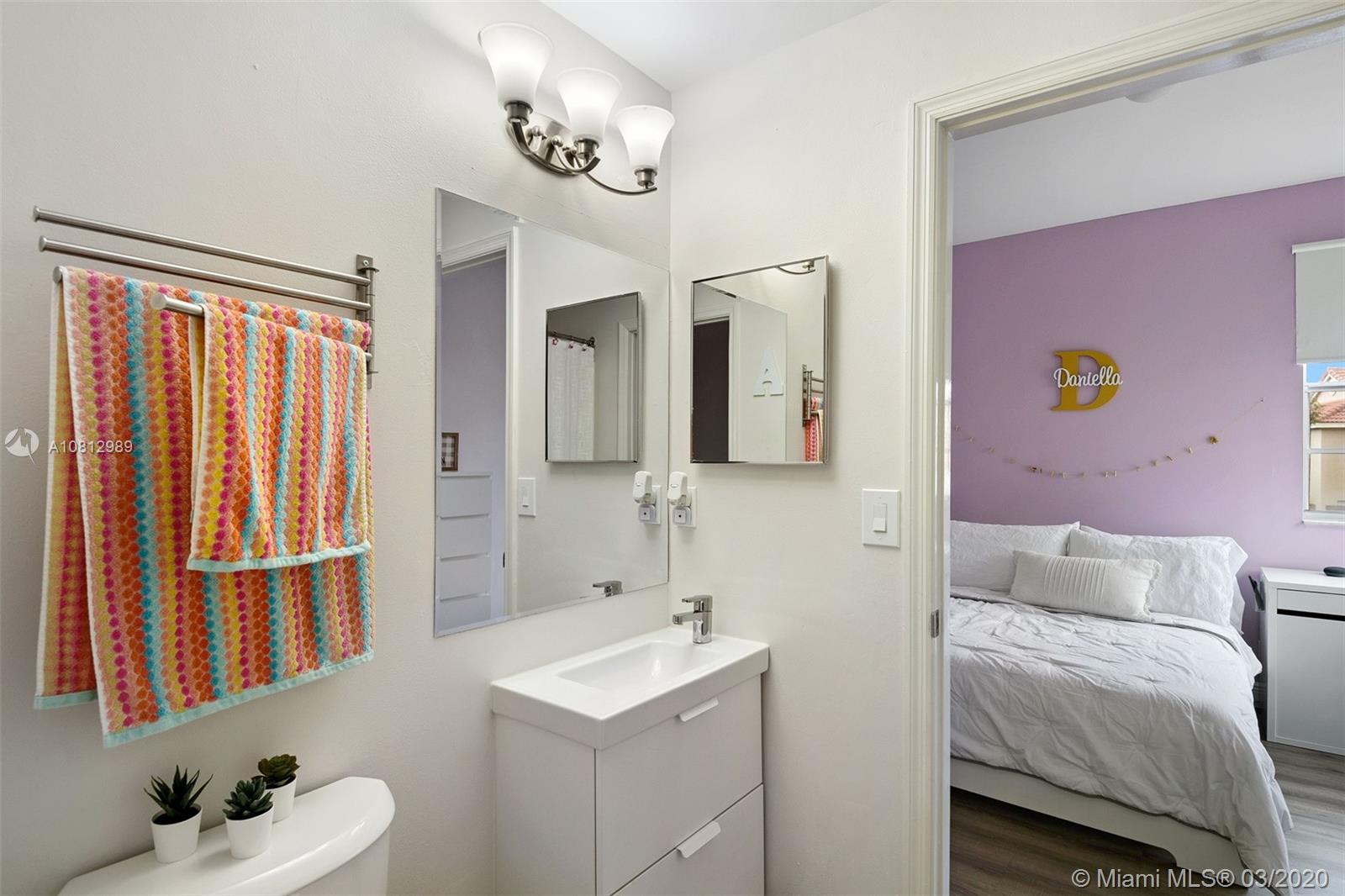 Bright, spacious and completely remodeled corner townhouse at the gated community of San Remo at Weston, three bedrooms, two bathroom and guest bathroom. One car garage, tastefully renovated with porcelain tile and laminated wood floors, large gourmet kitchen, new cabinets, luxurious granite counter tops and stainless steel appliances, new doors throughout the unit. Kitchen area has an open concept with a great area, casual dining and convenient half bath. Enjoy the private patio with garden views. Guest parking close to the unit. The community features Club House with pool, playgrounds and basketball court. Located at biking or walking distance from elementary school, close to best restaurants, shopping and accessible to highways.