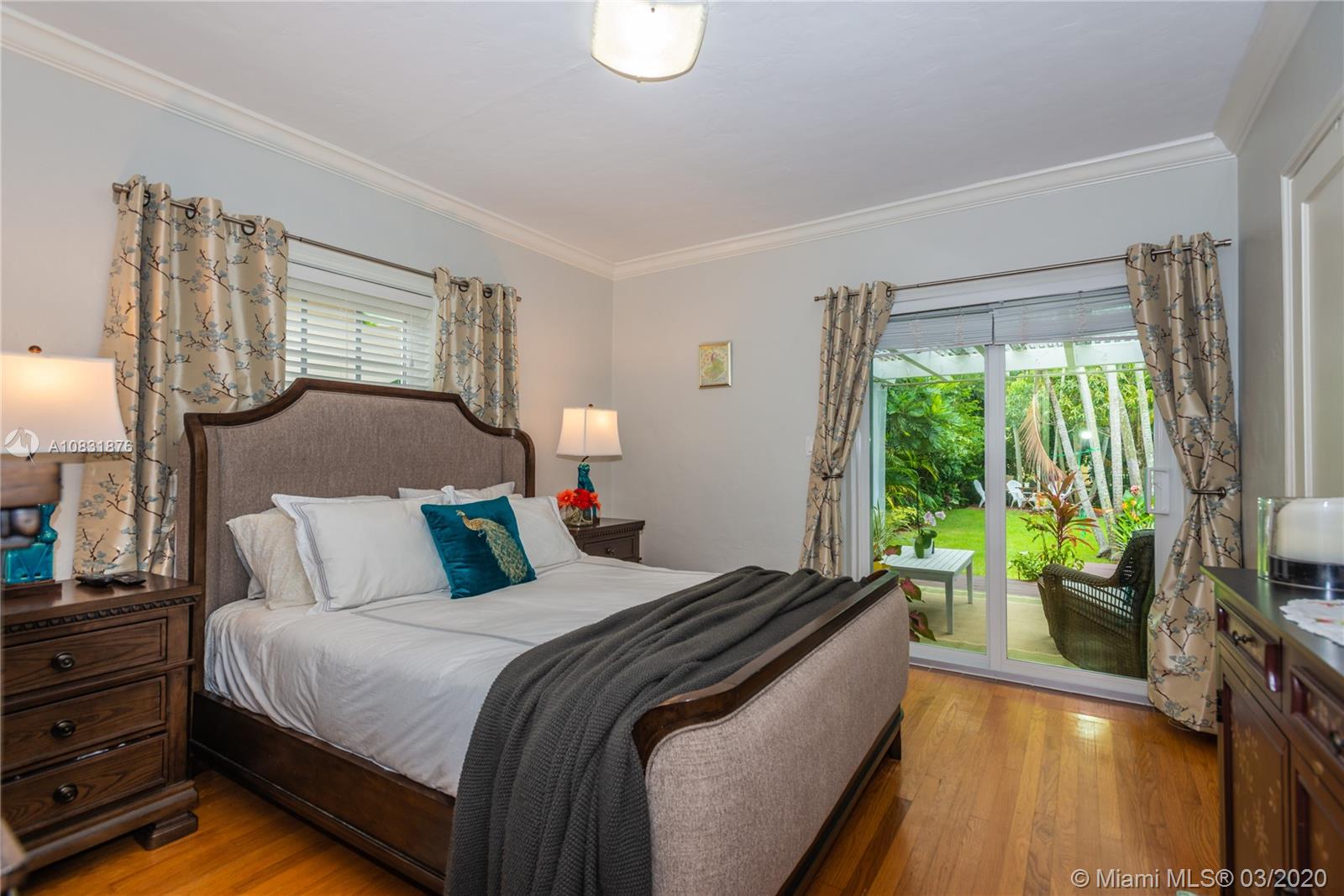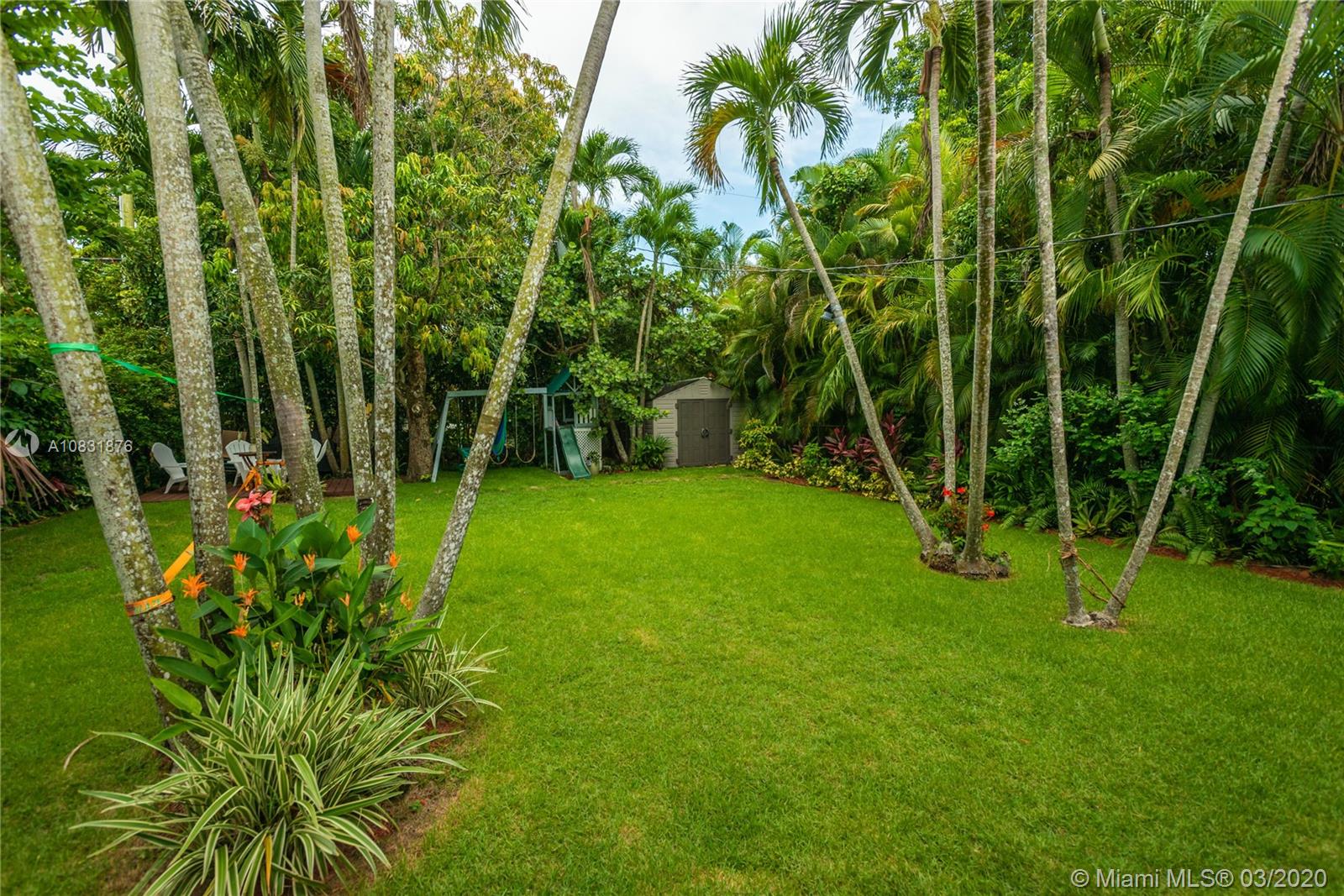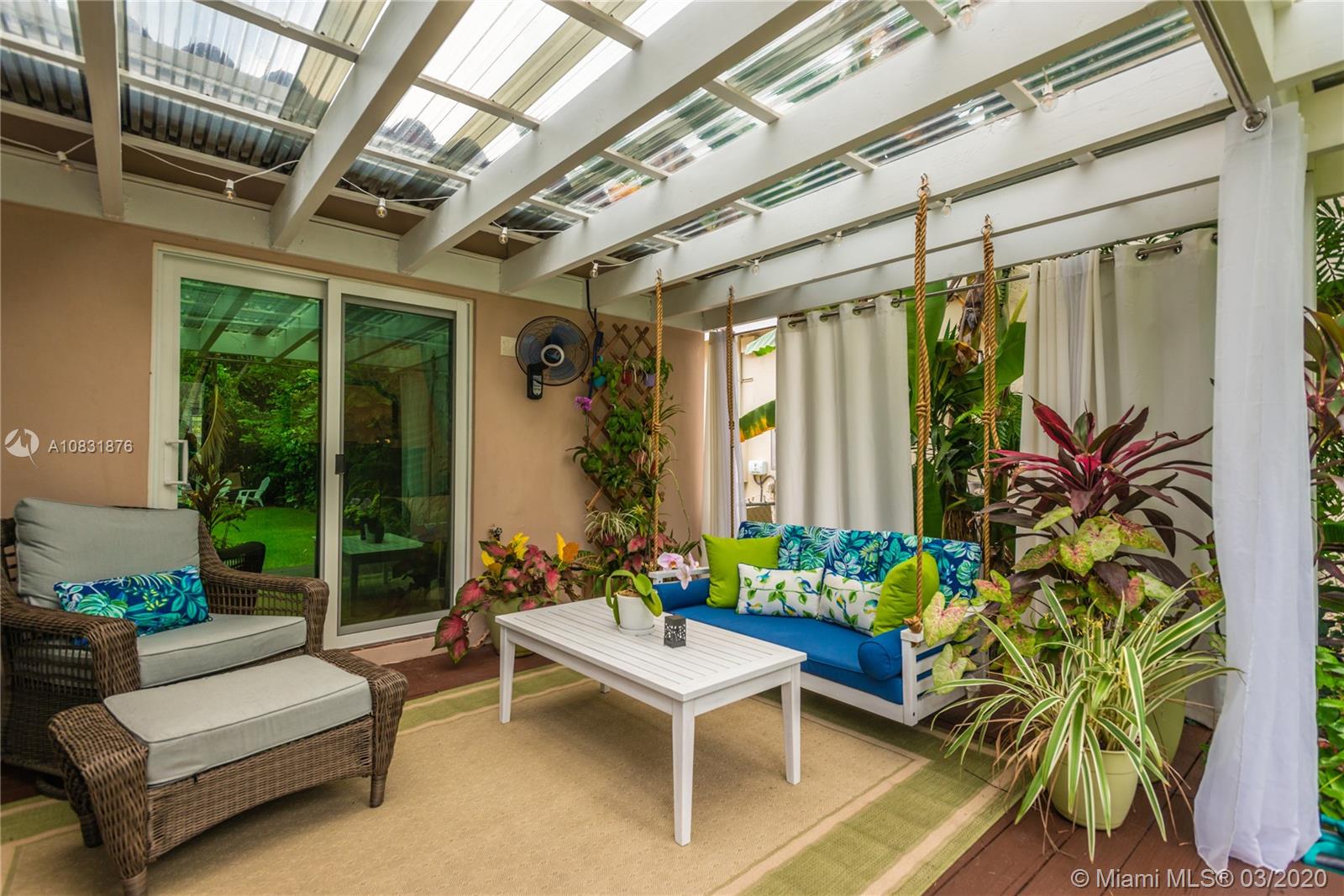 Beautiful Hawaiian garden on rare 7,350 sq ft lot with renovated Coral Gables home. Large Florida room with vaulted ceilings overlooks the tropical fruit garden. Upgrades include remodeled kitchen, new appliances, new impact windows/doors, new instant hot water system, new air-conditioning unit (AHU and A/C), new light/fan fixtures, electrical wiring, plumbing and authentic Chicago Brick driveway. Home also features beautiful hardwood floors and a working fireplace. Home has 2 Bedrooms plus Den, Home Office area and outdoor covered veranda. Lots of room for a pool and/or to extend house.