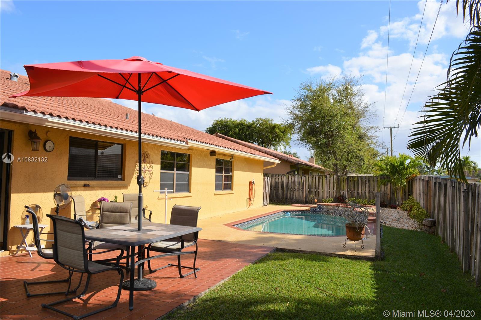 Beautiful home in highly desirable “Forest Lake” & rarely available in Cooper City featuring 4 bedrooms, 3 full bathrooms with a 2 car garage. High vaulted ceilings. Freshly painted inside. NO HOA. The Spacious updated kitchen comes with all stainless steel appliances, wooden cabinets, and granite counter tops that opens up to the family room. Family room leads to a cozy patio with a refreshing pool and jacuzzi to enjoy family gatherings. You'll love the spacious Master en-suite with nice walk-in closet and tastefully remodeled bathroom. Formal living room & dining room. Hurricane shutters. Minutes away from shops, great restaurants, Forest Lake Park, dog park, and A+ schools. This unique property awaits its new owners.: Virtual Public: Tue May 5, 5:00PM-6:00PM