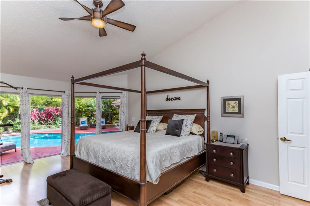 A rare opportunity to own a desirable home in The Enclave--an exclusive, gated community within Jacaranda Lakes. Updated home features 4 BR, 2½ Bath, open concept, vaulted ceilings, separate laundry room and so much more! Desirable backyard with pool, entertaining area and green space. This gated community has under 50 homes, with low HOA fees and great schools nearby (public & private)!