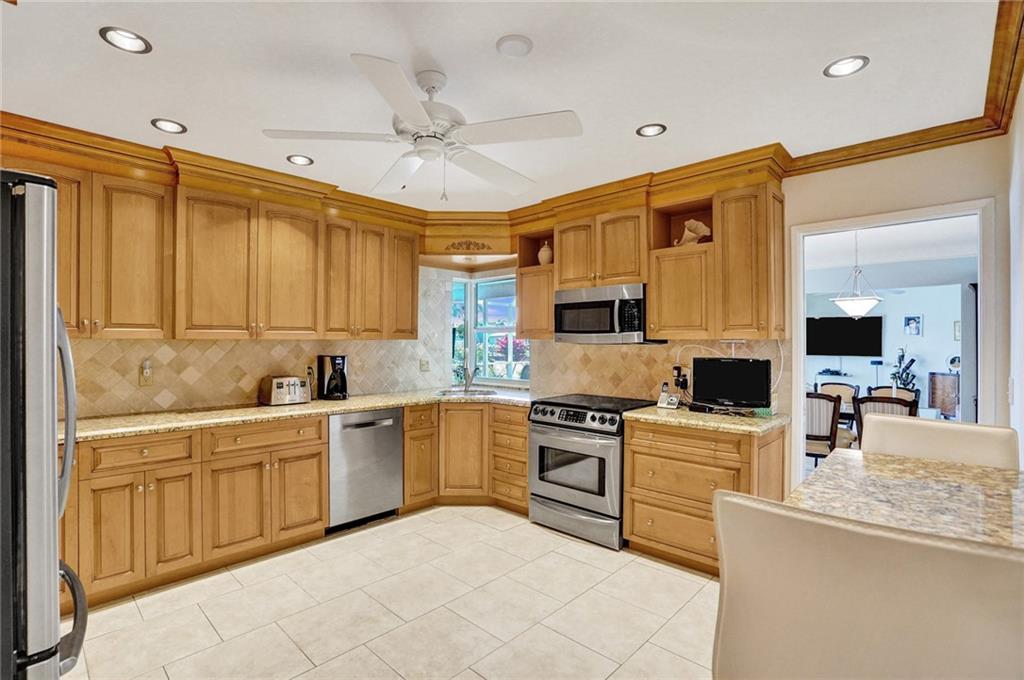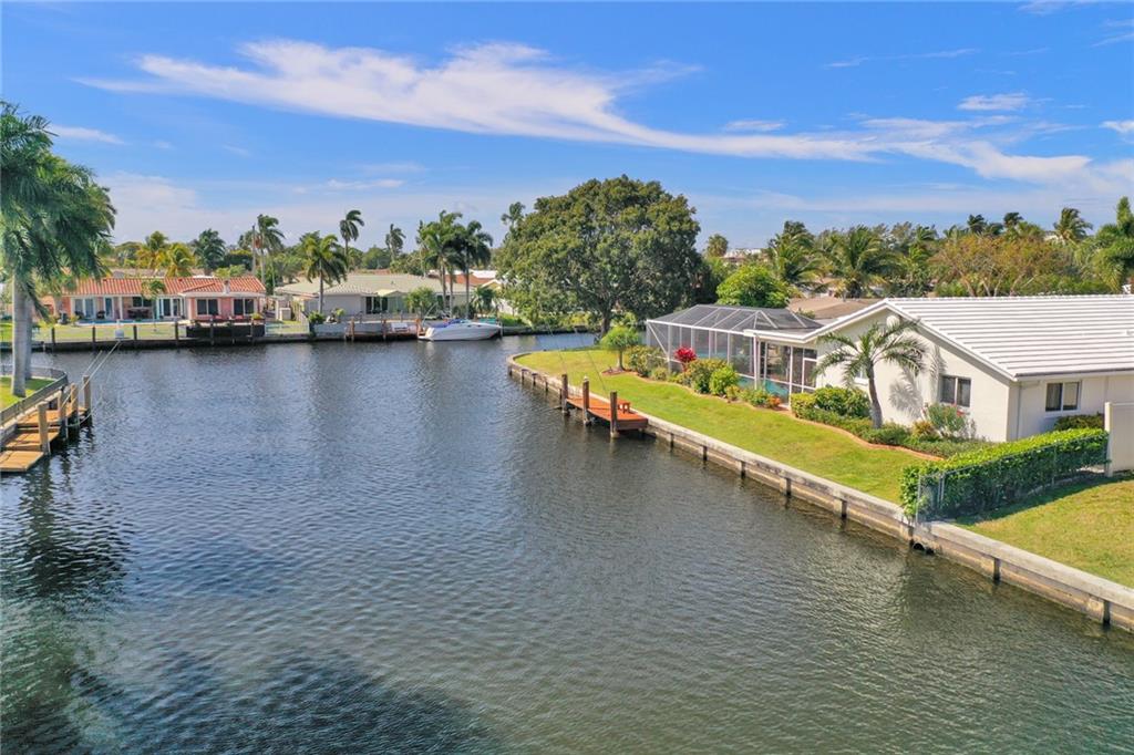 This perfect transitional remodel with 100' of waterfront is one of the largest waterfront homes in prestigious Coral Ridge Isles! Located just one off the point on a quiet cul de sac this 3 bedroom, 2 bath home features a Windowed Eat-In-Kitchen with solid wood cabinets, granite counters & back-splash and stainless steel appliances, a den with a bay window overlooking the sun-splashed pool & canal and a 2 car garage. The recently refinished enclosed heated pool is perfect for effortless year round outdoor entertaining complete with a pass thru to the kitchen! Hurricane impact windows & shuttered doors and neutral tile throughout. Rarely are waterfront homes of this caliber so fairly priced. Come and see for yourself.