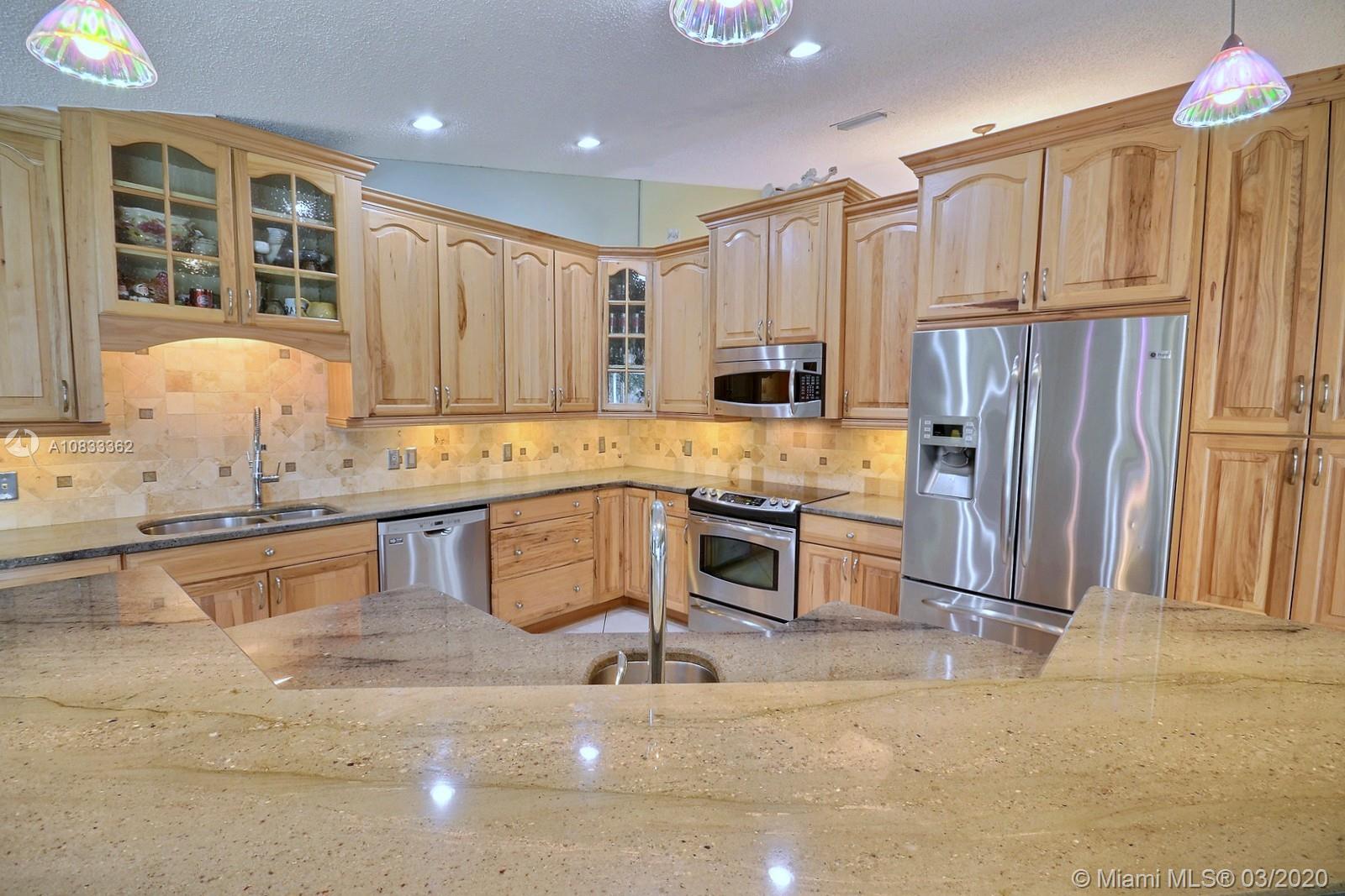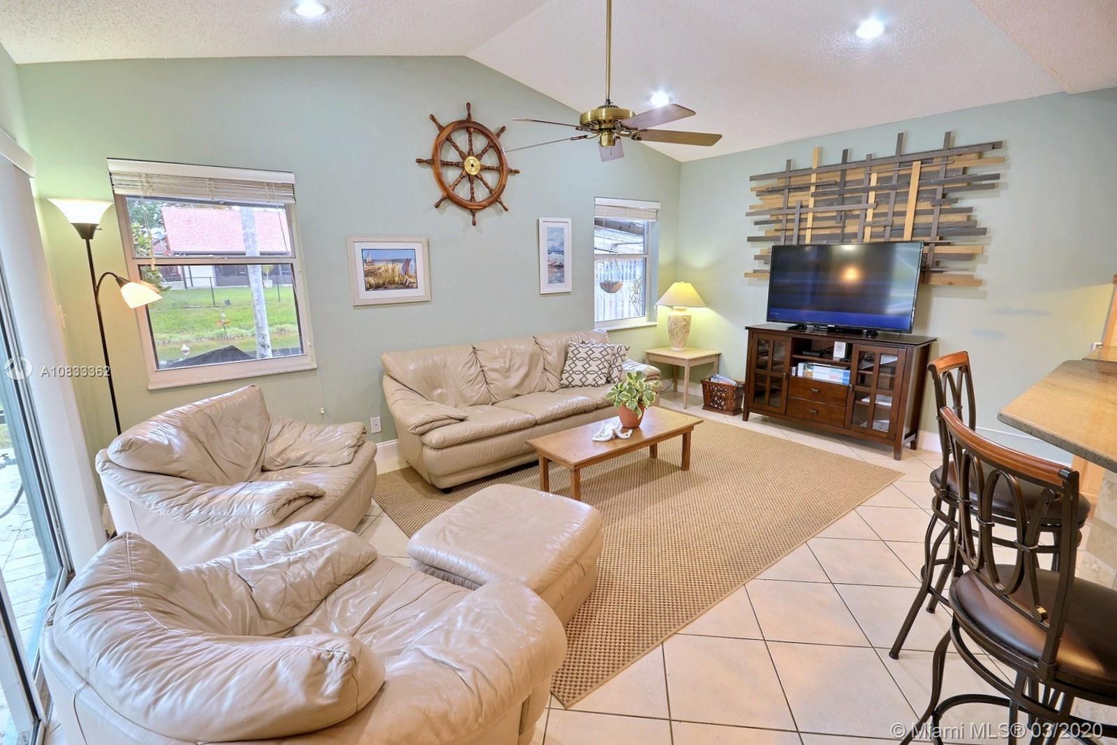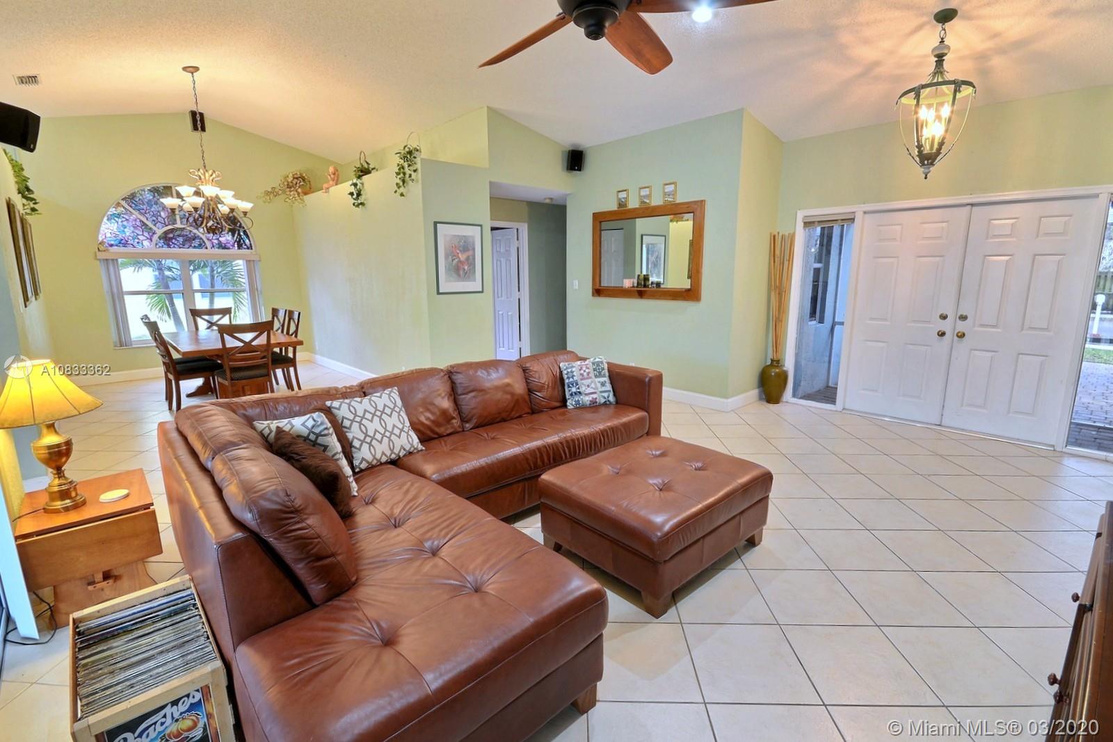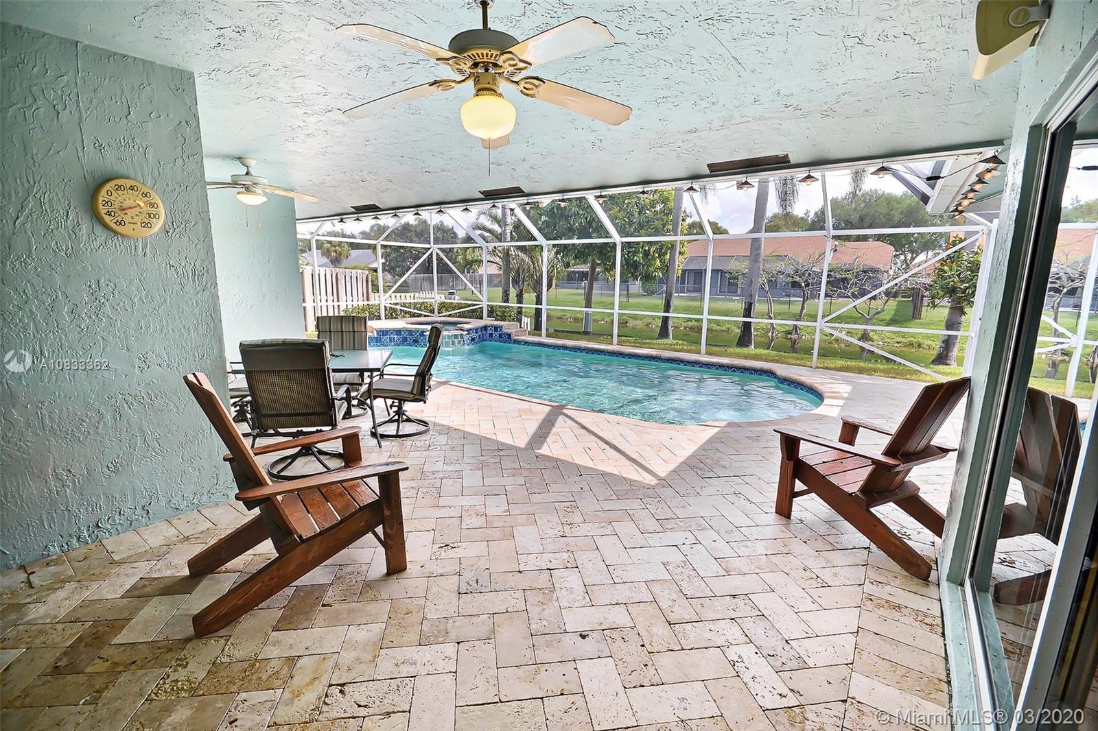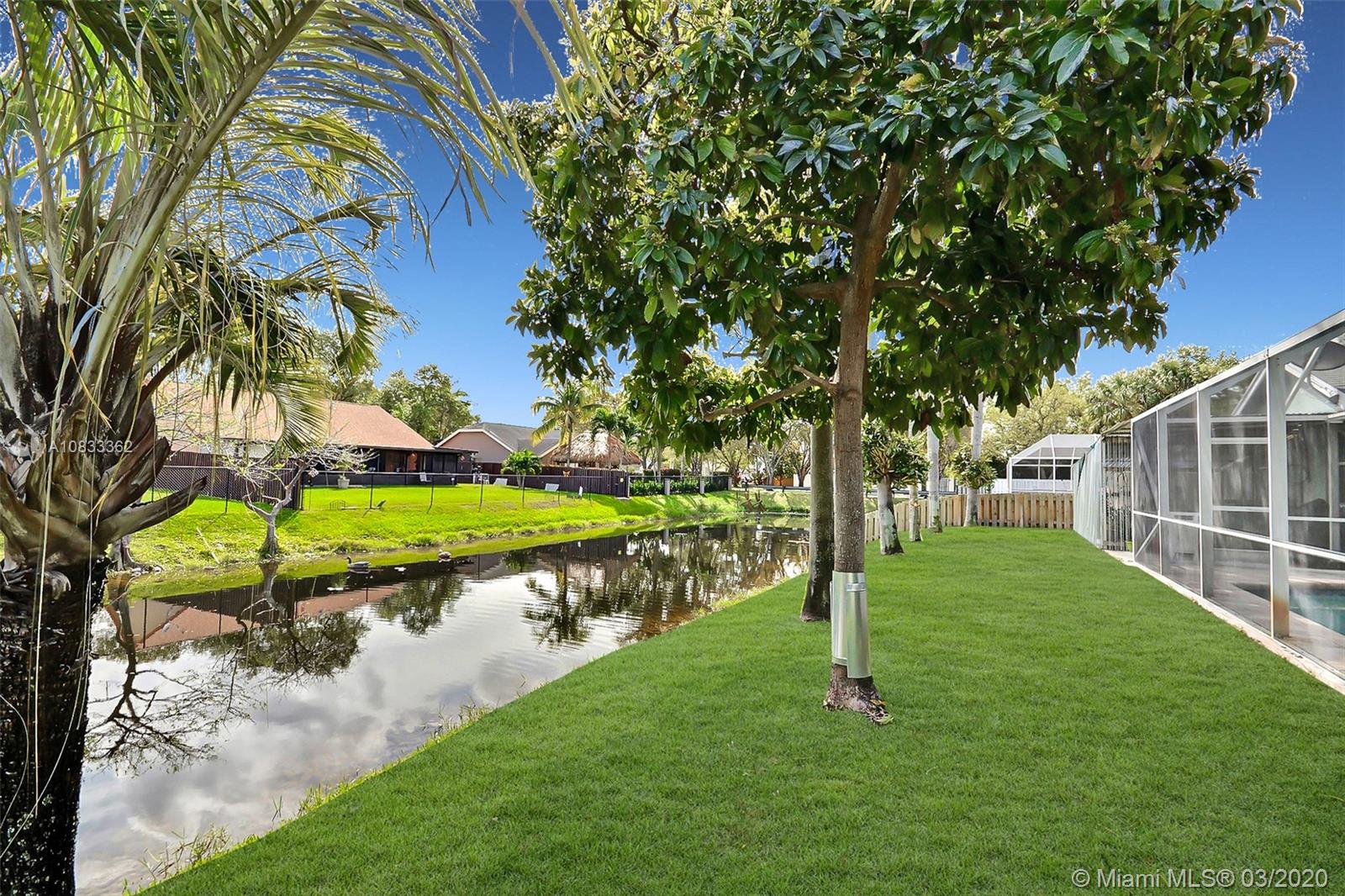 GORGEOUS POOL AND WATERFRONT HOME IN COOPER'S POINT FEATURES: UPDATED KITCHEN WITH TALL WOOD CABINETRY WITH GLASS ACCENTS, GRANITE COUNTERS, ISLAND WITH SECOND SINK, STAINLESS STEEL APPLIANCES, AND A VIEW OF THE SPECTACULAR WATERFRONT POOL AREA. SPACIOUS LIVING AREAS WITH VAULTED CEILINGS, TILE AND PERGO-LIKE FLOORING, RECESSED LIGHTING, CEILING FANS, & TASTEFUL DECOR. LARGE MASTER SUITE WITH HIGH CEILINGS, MASTER BATH WITH DOUBLE SINKS, SEPARATE TUB & SHOWER. CHARMING CURB APPEAL WITH LUSH LANDSCAPING AND TRELLIS ENTRY AND SCREENED-IN PORCH. SERENE BACKYARD WITH BRILLIANT POOL, RELAXING SPA IN SCREENED IN PATIO WITH BEAUTIFUL WATER VIEWS. LAUNDRY ROOM, 2 CAR GARAGE, NEW ROOF 2014, WATER HEATER 2019. ROMANTIC TREE-LINED STREET IN COOPER CITY'S DESIRABLE SCHOOL DISTRICT.