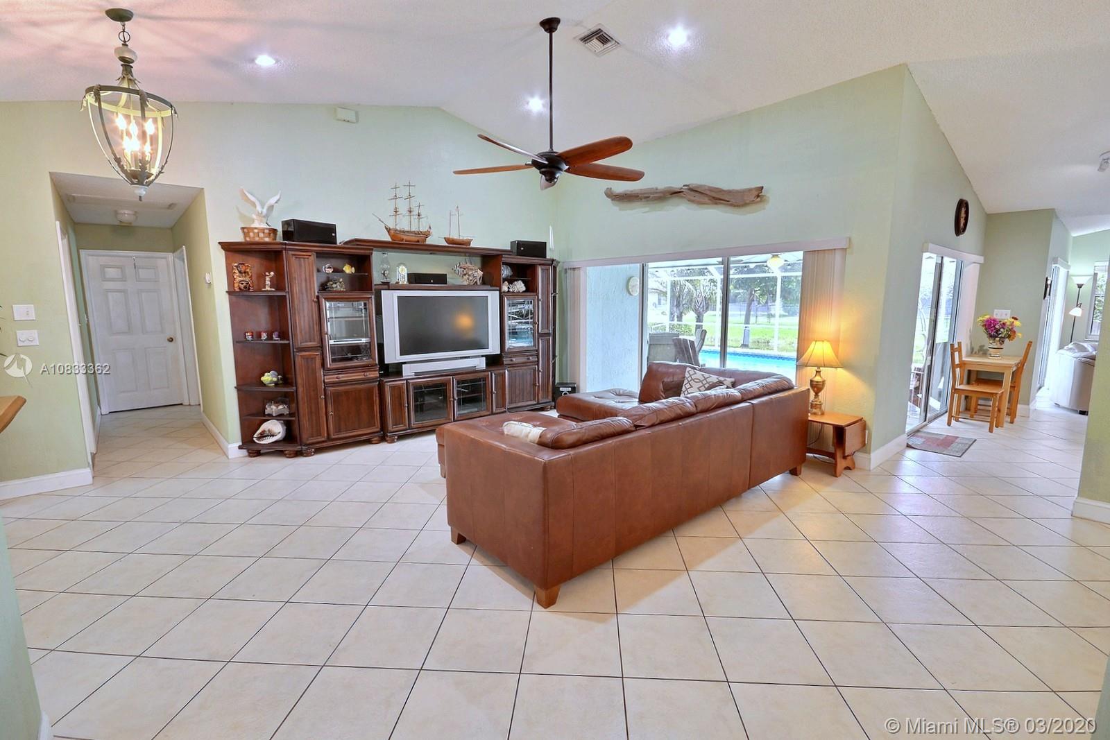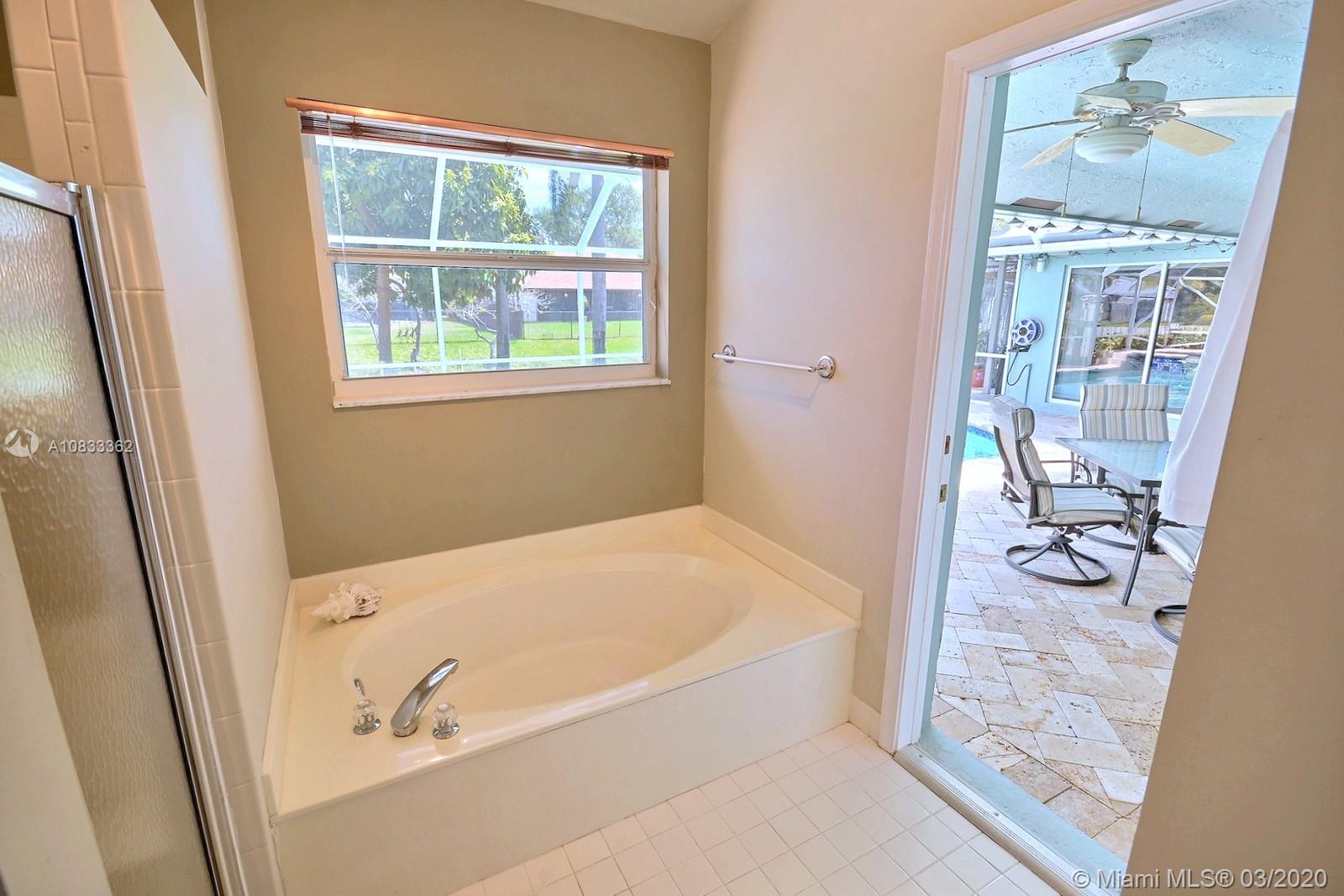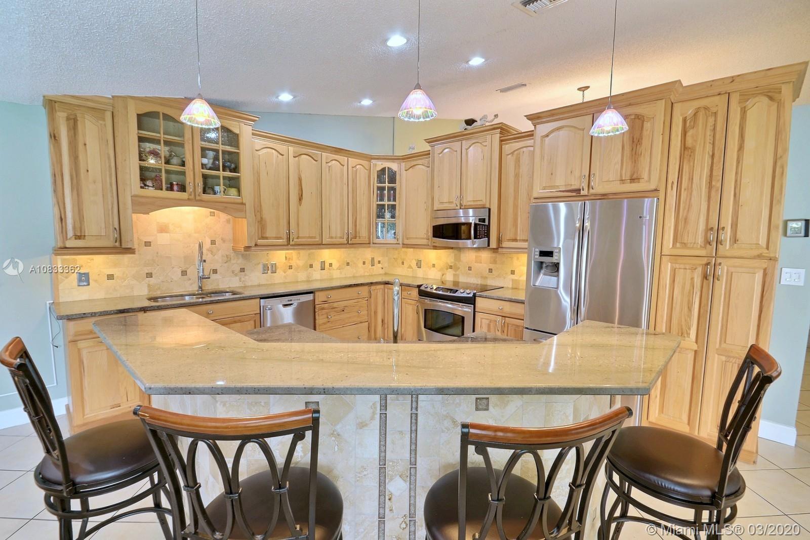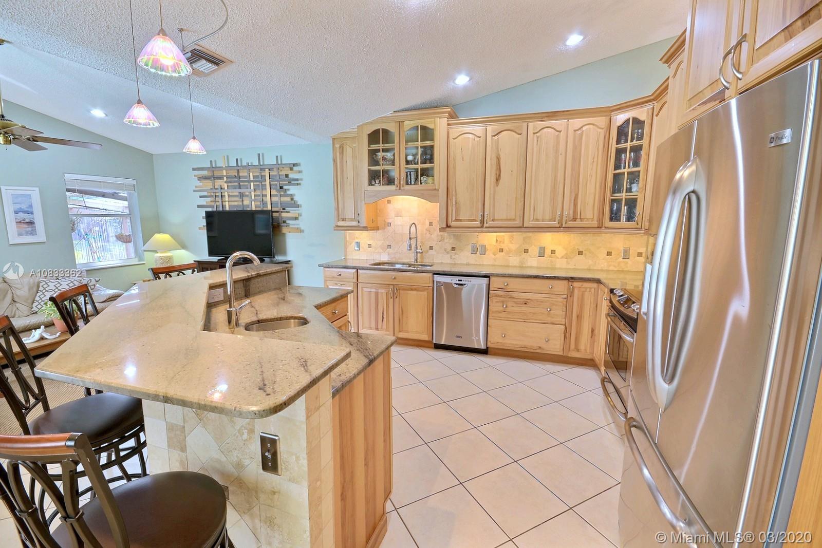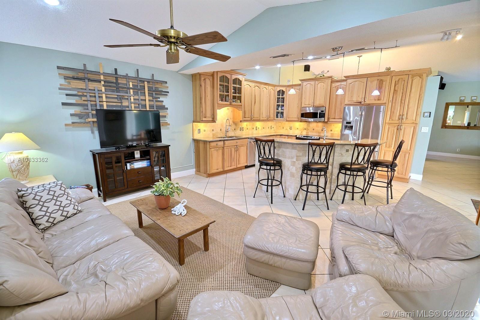 GORGEOUS POOL AND WATERFRONT HOME IN COOPER'S POINT FEATURES: UPDATED KITCHEN WITH TALL WOOD CABINETRY WITH GLASS ACCENTS, GRANITE COUNTERS, ISLAND WITH SECOND SINK, STAINLESS STEEL APPLIANCES, AND A VIEW OF THE SPECTACULAR WATERFRONT POOL AREA. SPACIOUS LIVING AREAS WITH VAULTED CEILINGS, TILE AND PERGO-LIKE FLOORING, RECESSED LIGHTING, CEILING FANS, & TASTEFUL DECOR. LARGE MASTER SUITE WITH HIGH CEILINGS, MASTER BATH WITH DOUBLE SINKS, SEPARATE TUB & SHOWER. CHARMING CURB APPEAL WITH LUSH LANDSCAPING AND TRELLIS ENTRY AND SCREENED-IN PORCH. SERENE BACKYARD WITH BRILLIANT POOL, RELAXING SPA IN SCREENED IN PATIO WITH BEAUTIFUL WATER VIEWS. LAUNDRY ROOM, 2 CAR GARAGE, NEW ROOF 2014, WATER HEATER 2019. ROMANTIC TREE-LINED STREET IN COOPER CITY'S DESIRABLE SCHOOL DISTRICT.
