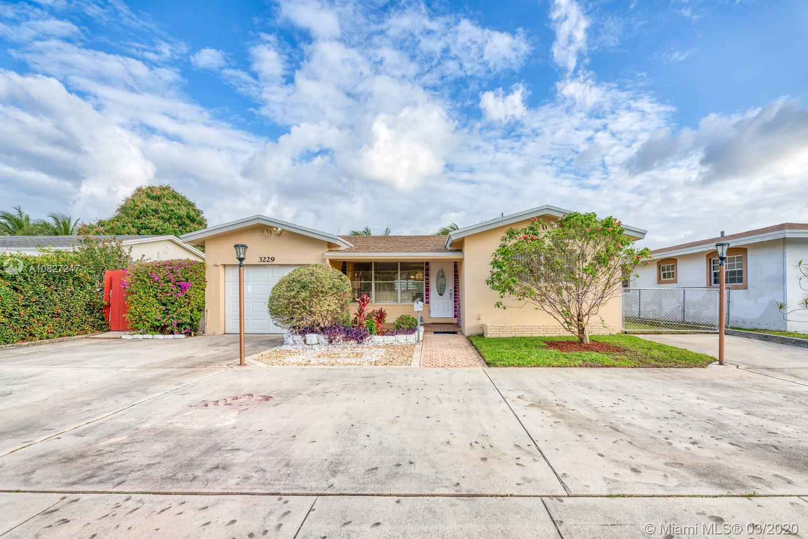 Stunning home located in desirable neighborhood in Hollywood. This sparkly one story home features a comfortable layout with two bedrooms and two full baths, perfect for any family, Renovated Kitchen with stainless steel appliances and granite counter tops, Huge Patio with fruit trees and room for pool, New Roof 2016, Driveway can accommodate more than 6 cars. Enjoy the Florida weather cooking on the grill surrounded by an exquisite manicured vegetation. This Immaculate and beautiful home is ready to move in.