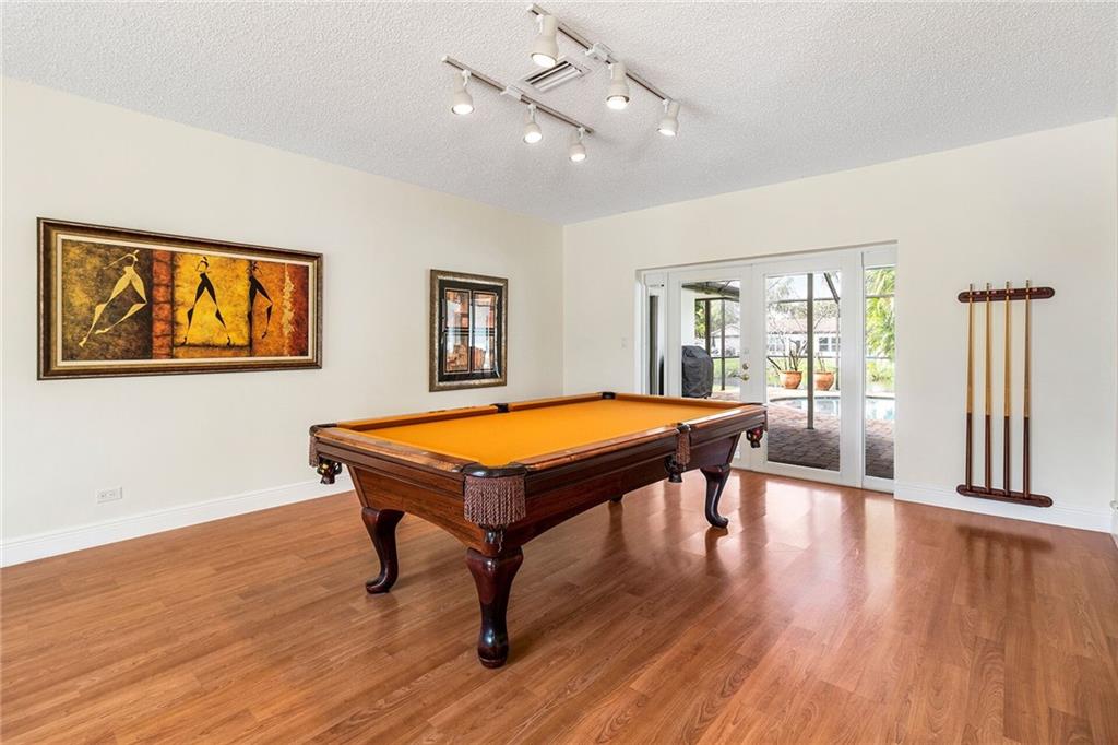 Spectacular waterfront home located on one of the most desirable streets and neighborhoods in Plantation. The split floorplan offers plenty of privacy with 4 bedrooms and 2-1/2 bathrooms. Enjoy waterfront views from multiple rooms and the enclosed pool area. Perfect for entertaining! Practice your putting skills on your own private putting green. Freshly painted and a new A/C unit in 2020. The home features impact windows and accordion shutters throughout. There is also a Generac back up generator. The huge circular driveway offers plenty of parking. No HOA, so bring your boat or RV. Plantation Golf Estates is located minutes from shopping, restaurants and entertainment and has access to all major roads and highways. Great school district. Don’t miss this one!