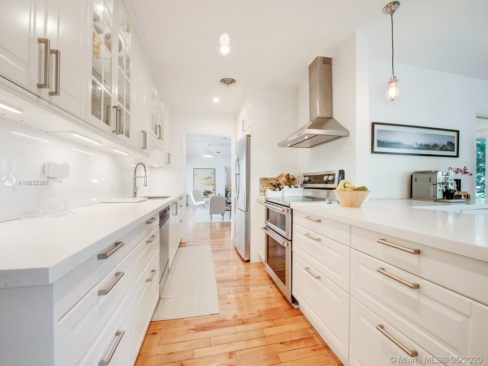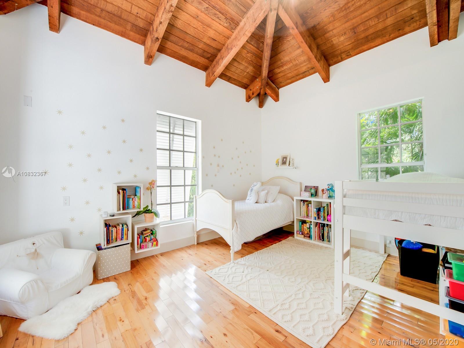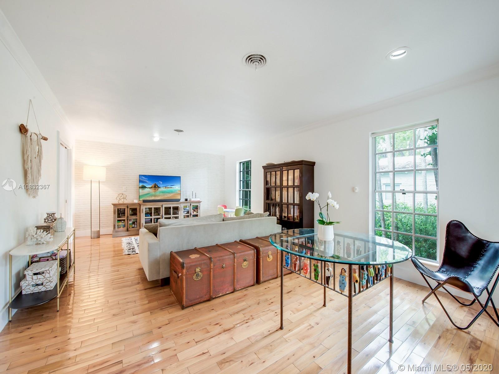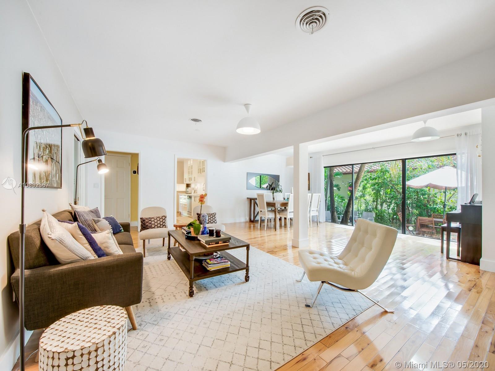 This beautiful, remodeled 5 bedroom, 4 bath home is located in a Prime South Gables location within the Sunset Elementary School District. The open layout plus windows galore provides lots of natural light & garden views from every room! Entertain in the private courtyard. Wood floors throughout enhance the ambience. Completely remodeled kitchen with granite countertops, new appliances & smart lights. New roof, remodeled baths, new central ac with Ecobee and impact front door w/electronic door lock. Two master bedrooms downstairs! Three bedrooms, 2 full baths upstairs w/wood beam vaulted ceilings. Perfect for families and entertaining. One car garage, low maintenance home. Walk to A+ Sunset Elementary School, shops and restaurants in South Miami, Sunset Place & University of Miami