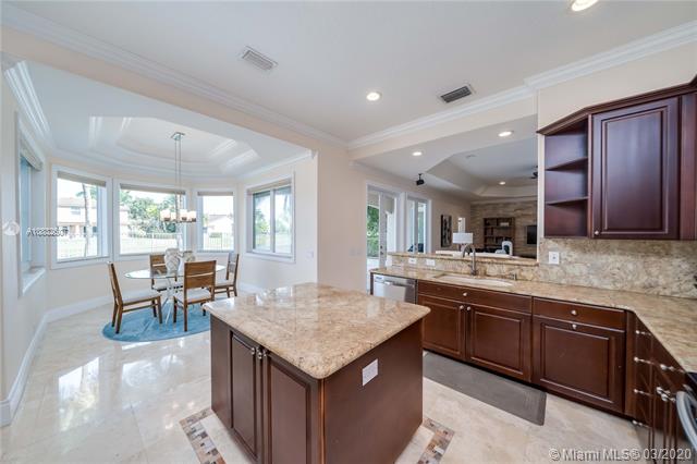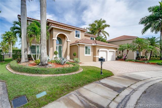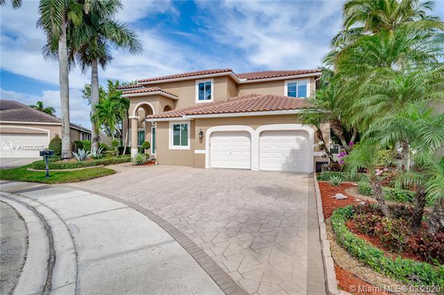 Exquisite home in Weston Hills. Tastefully remodeled. Featuring New Roof New Impact doors and windows, modern stair case, stone wall accents, all new interior doors, walking closets, oversized two car garage with driveway that fits 4 cars, pool with salt chlorination system, cabana bath and a Generator for your peace of mind. Beautiful large backyard, with stunning serene lake view and a balcony perfect to enjoy every sunset. Located on a cul-de-sac. making this the perfect home for a family. Only a two minute walk to the park and great neighbors. Gated community with security patrols. The Country Club offers two of the best golf courses in Broward County and other amenities including, tennis, dining, pool, recreation.