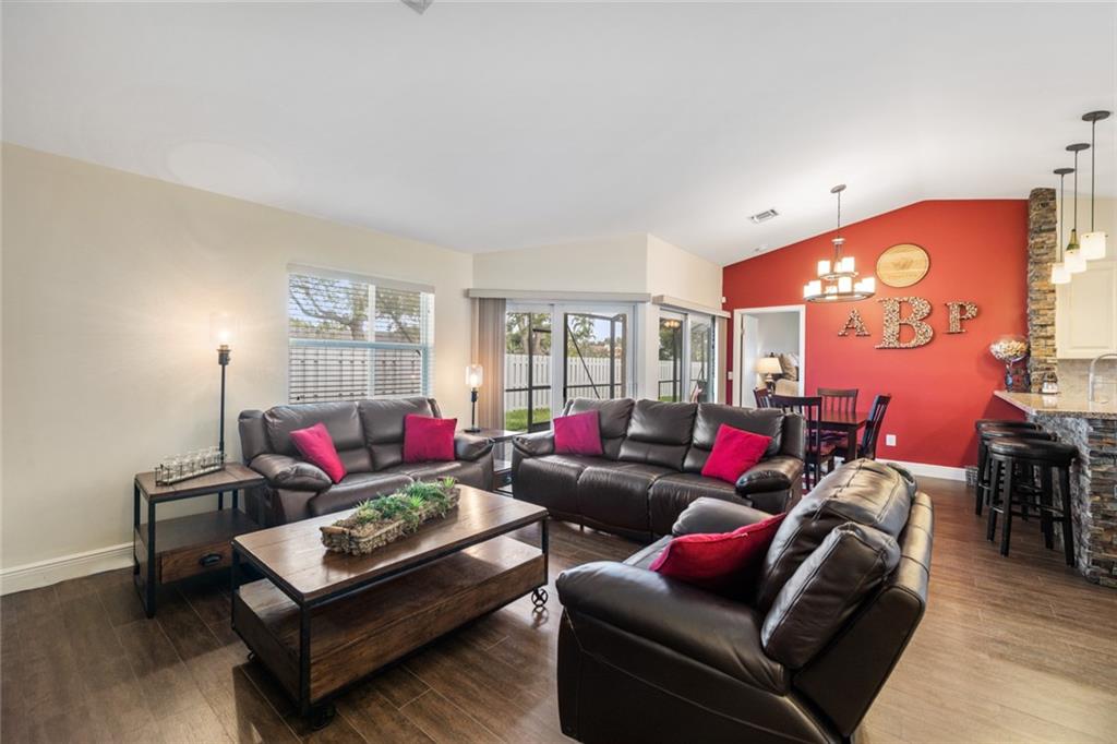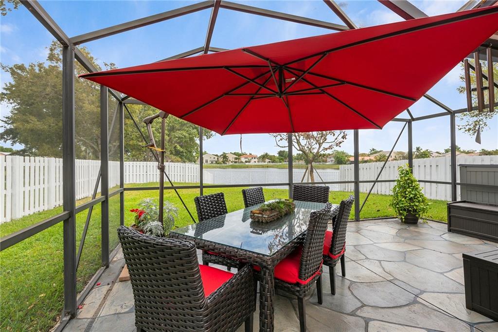 STUNNING single family home located in Plantation's Quatraine III. This split floor plan (3 bedroom, 2 upgraded bath) home sits on one of the largest oversized, lakefront lots in the neighborhood. Wood tile floor carries throughout the open living areas, bedrooms, and bathrooms and the completely remodeled kitchen features granite counters and top of the line stainless steel appliances. Inside washer and dryer, vaulted ceilings, impact windows and doors and Container Store customized closets are just some of the many upgrades (see attached feature sheet). Enjoy the unobstructed lake views from the screened in patio in your fully fenced backyard. 1 car garage with epoxy floor and customized storage. Low HOA. This one is a MUST SEE!